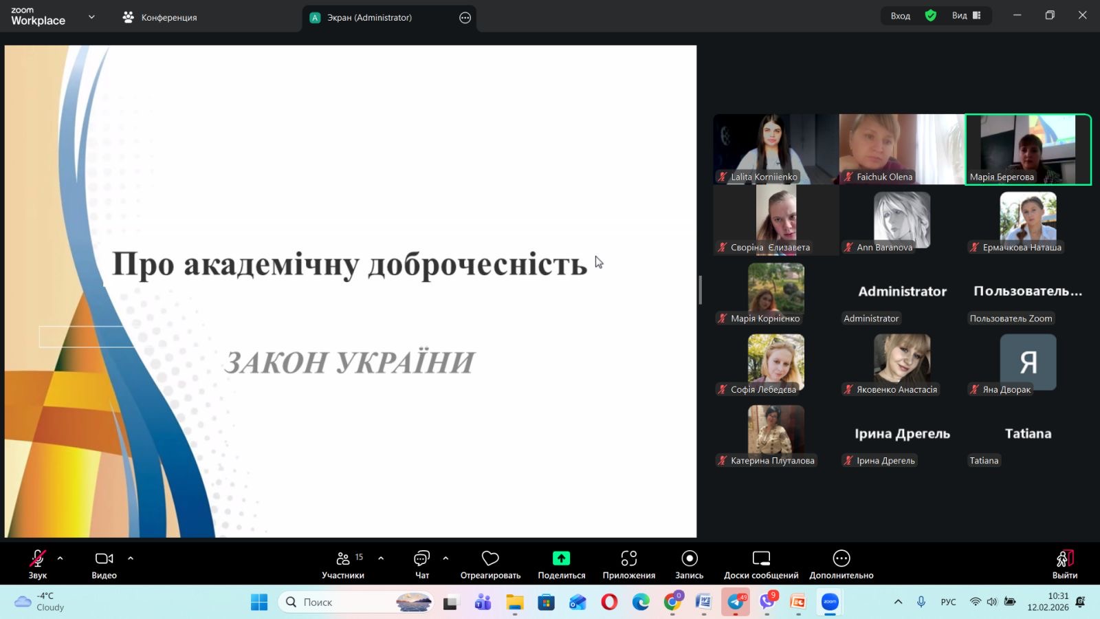 У межах роботи студентських науково-практичних гуртків «Клуб практичної соціальної роботи» та «Клуб практичної логопедії» 12 лютого 2026 року відбувся захід для студентів І (бакалаврського) та ІІ (магістерського) рівнів вищої освіти спеціальностей «Спеціальна освіта. Логопедія», «Соціальна робота» на тему «Академічна доброчесність – основа якісної освіти». У ході заходу д.п.н., професор Савінова Наталія Володимирівна та к.п.н., доцент Берегова Марія Ігорівна ознайомили здобувачів освіти із положеннями Закону України «Про академічну доброчесність».
