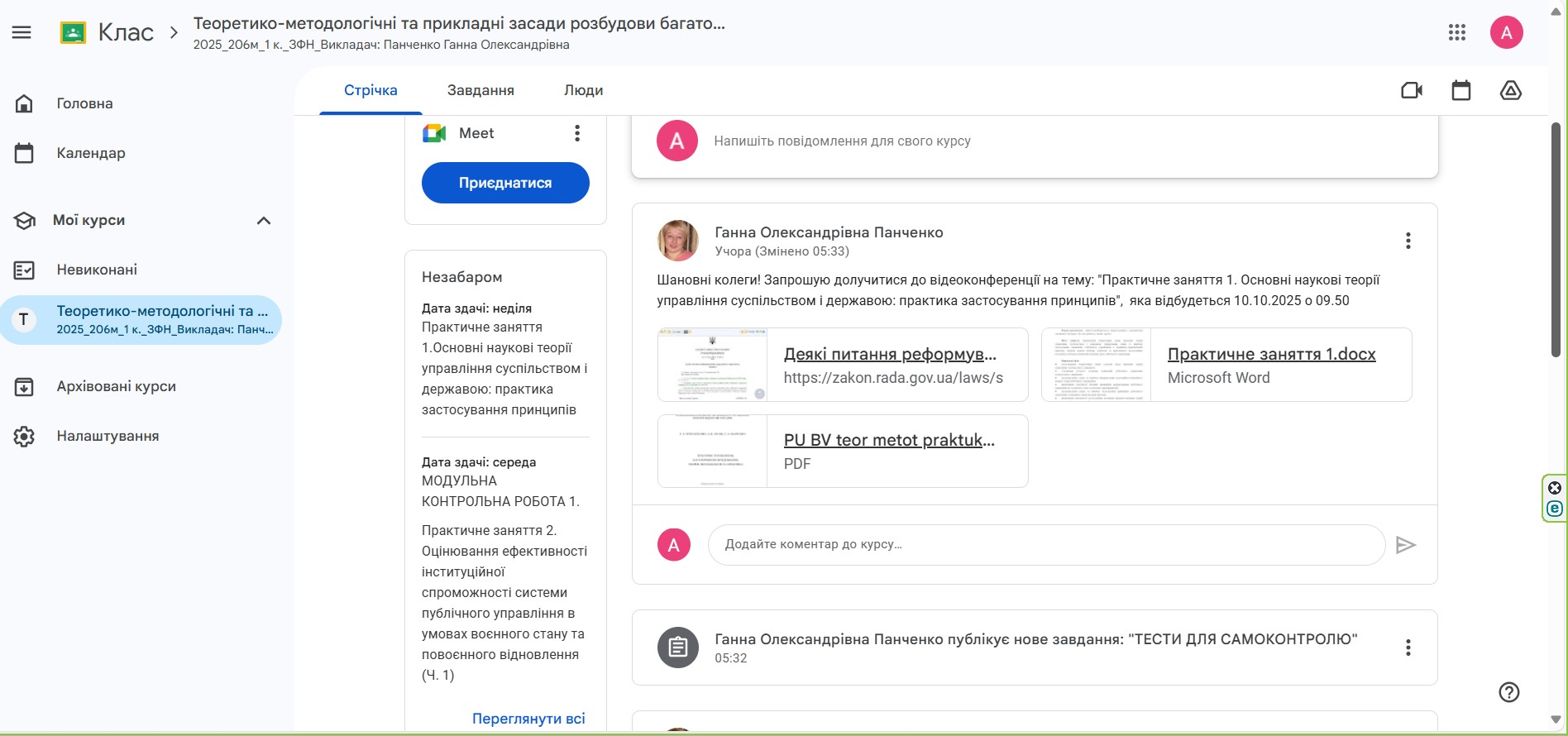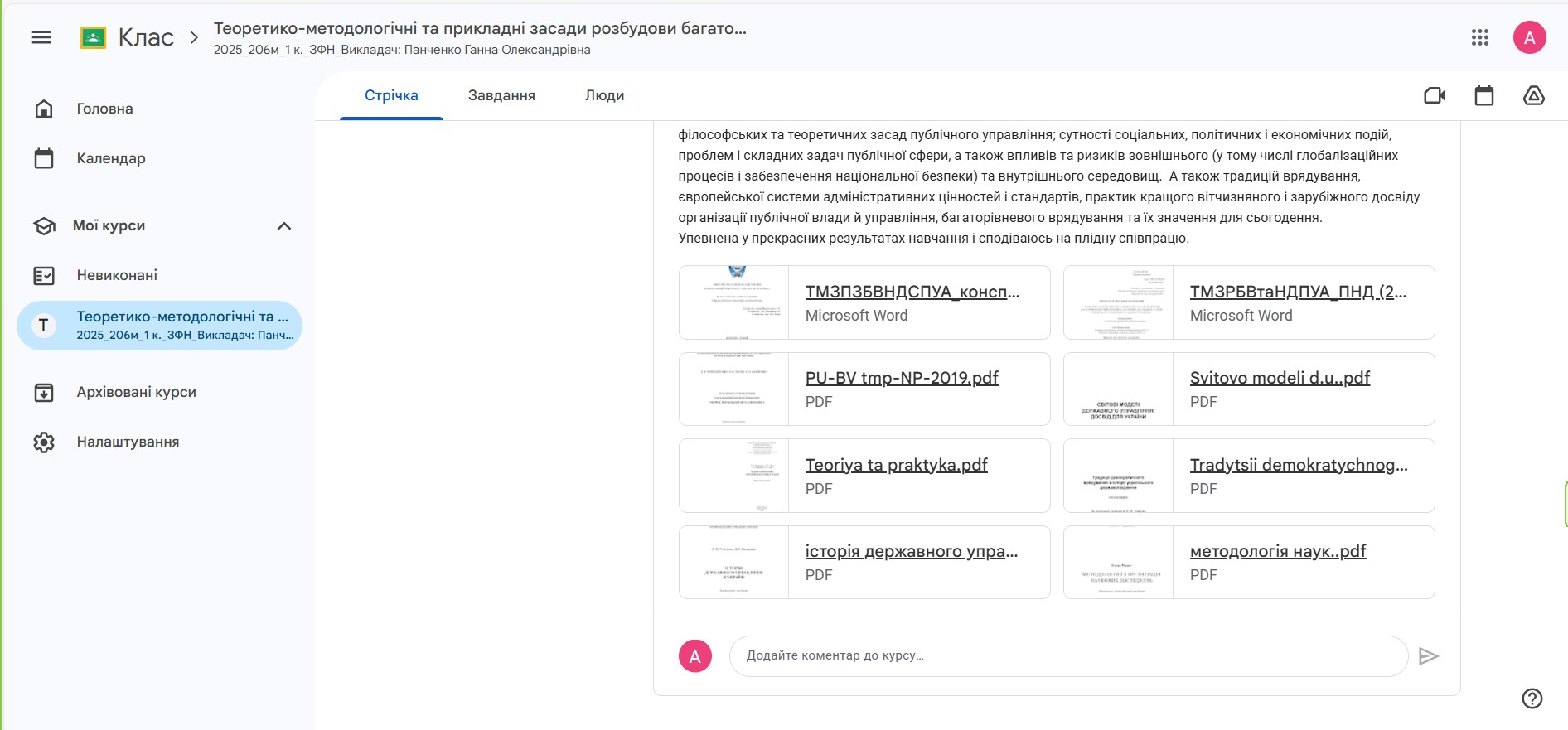 Особливу увагу приділено дисциплінам, що формують фундаментальні та практичні компетентності у сфері публічного управління. Серед них – «Теоретико-методологічні та прикладні засади розбудови багаторівневого врядування та наукових досліджень у сфері публічного управління та адміністрування», де студенти ознайомилися з сучасними концепціями багаторівневого врядування, методами наукових досліджень у державному секторі та прикладними підходами до управління організаціями.
