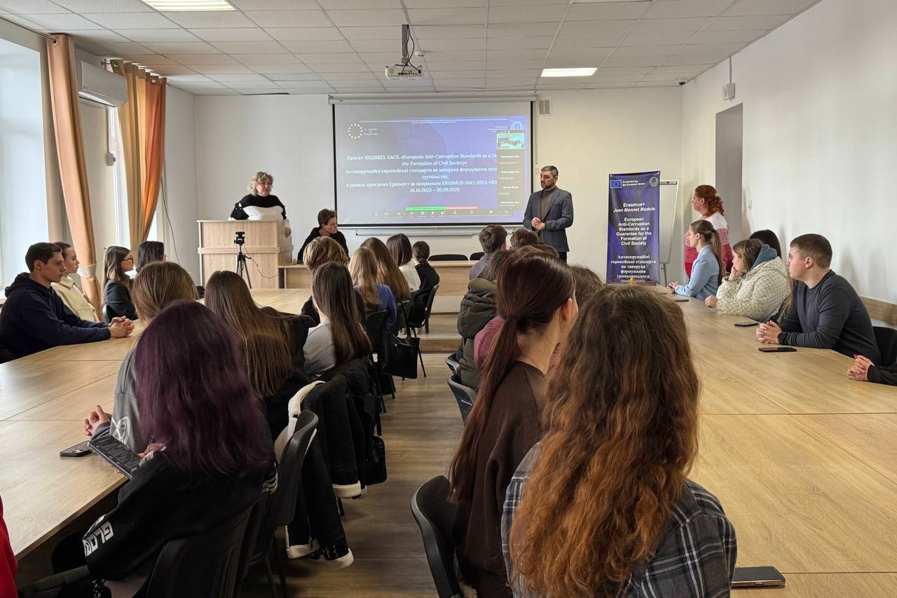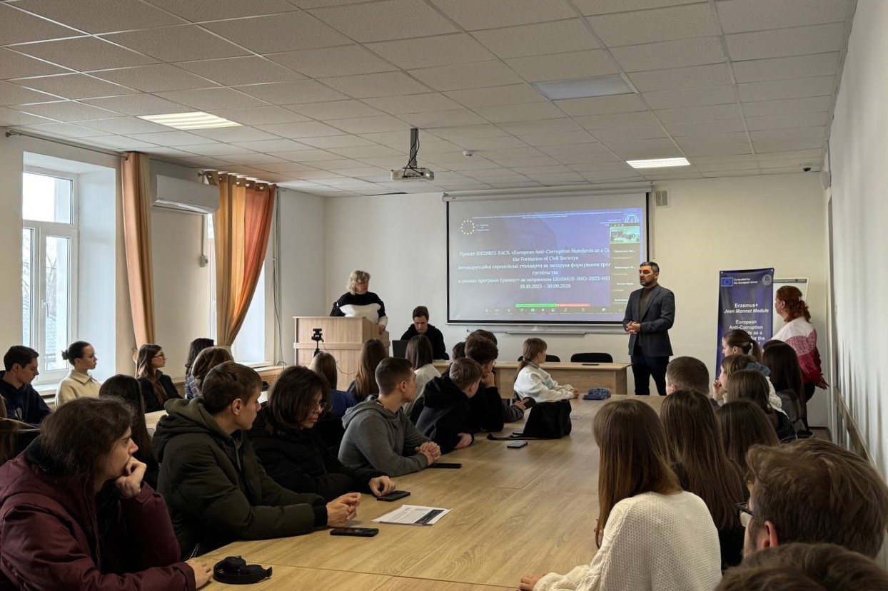 5 лютого 2026 року відбулася перша лекція третього року реалізації курсу «Антикорупційні європейські стандарти та їх запровадження в Україні». Проєкт здійснюється в межах гранту «Антикорупційні європейські стандарти як запорука формування громадянського суспільства» за програмою Erasmus+ (напрям ERASMUS-JMO-2023-HEI-TCH-RSCH).