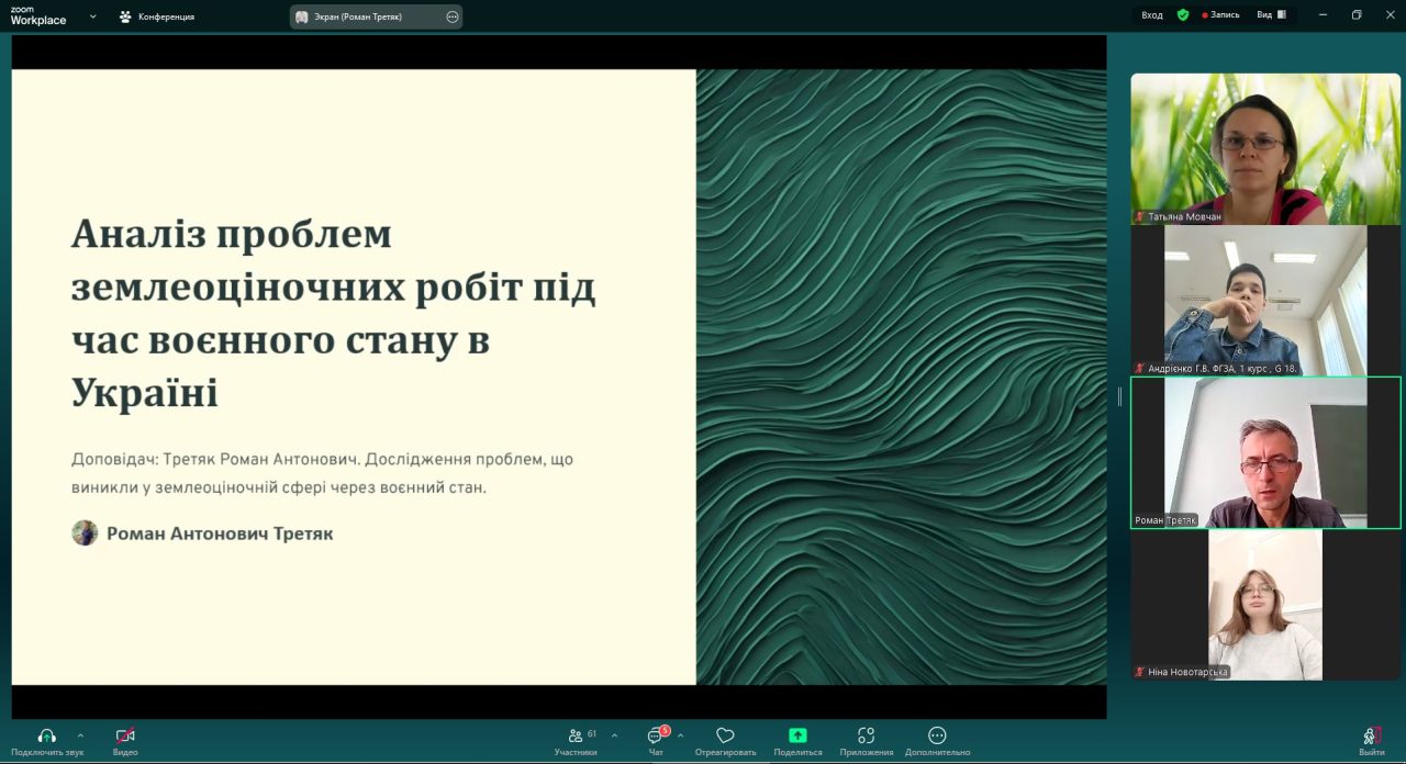 Виступ викладачів кафедри управління земельними ресурсами у рамках засідання наукової школи професора Антона Третяка 23 Червня, 2025