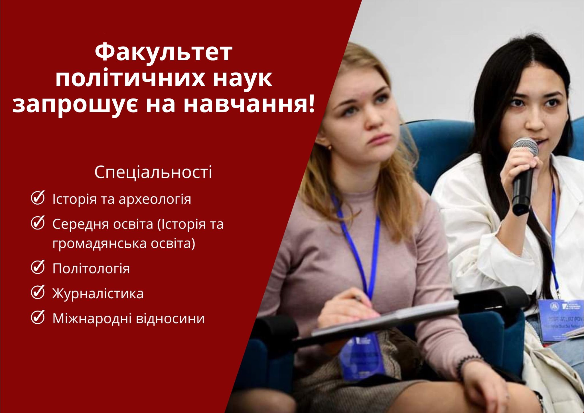 Студенти факультету політичних наук мають можливість скористатися міжнародними освітніми програмами – «Erasmus+», Fulbright, що дає їм можливість пізнати світ, познайомитися із західною системою освіти, щоб згодом продовжити навчання за магістерськими програмами провідних європейських та інших університетів.