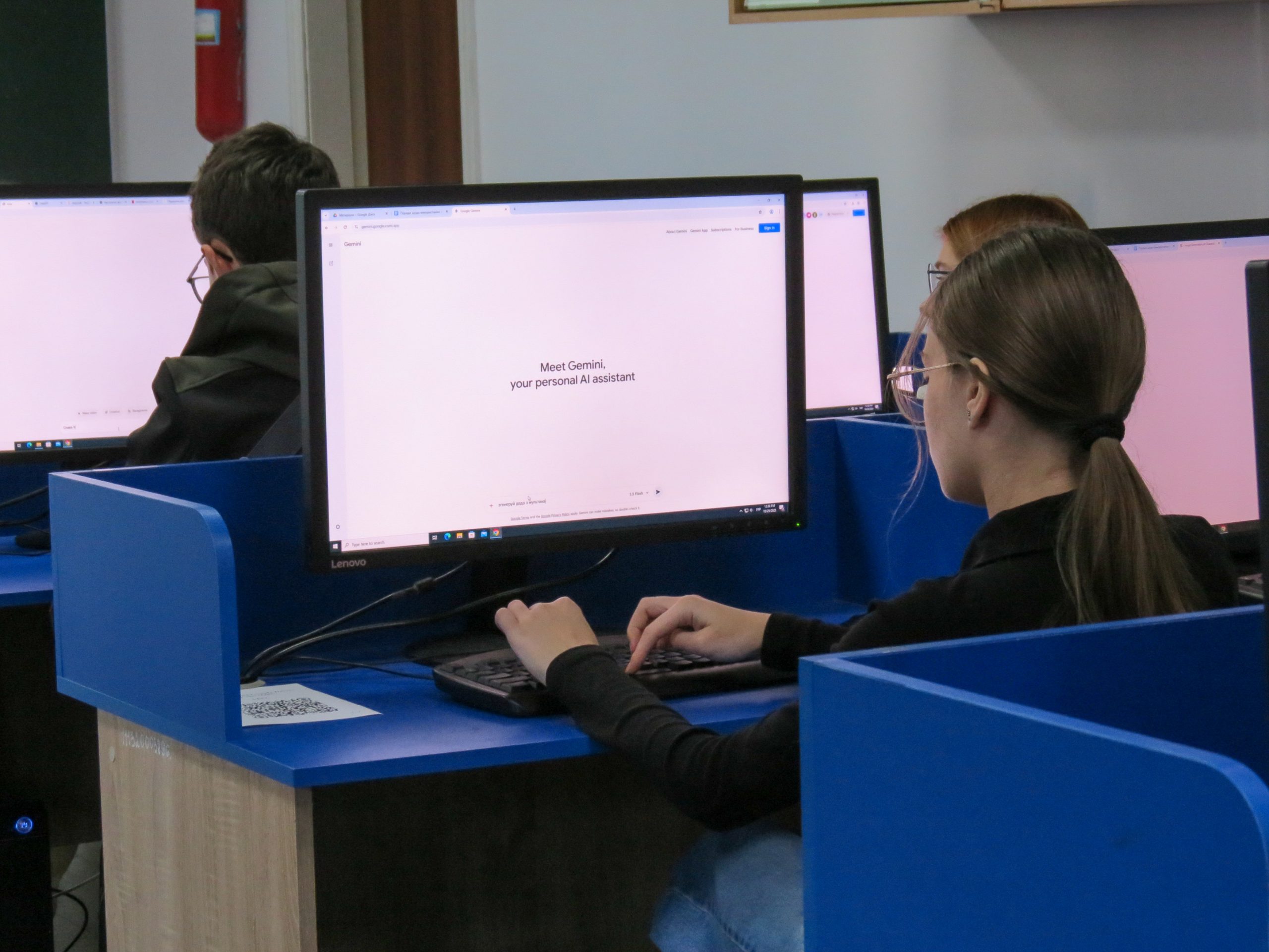 Під час майстер-класу «Hello, AI! Як подружитися з розумними технологіями» учасники ознайомилися з основами штучного інтелекту, принципами роботи нейронних мереж і великих мовних моделей. Вони дізналися, як сучасні чат-боти – зокрема ChatGPT, Gemini, Grok, Mistral і Perplexity – застосовуються у навчанні, пошуку інформації та творчості. У практичній частині школярі вчилися формулювати запити, працювати з документами, аналізувати дані, створювати зображення та постери за текстовими описами. Інтерактивний формат сприяв глибшому розумінню можливостей ШІ у повсякденному житті.
