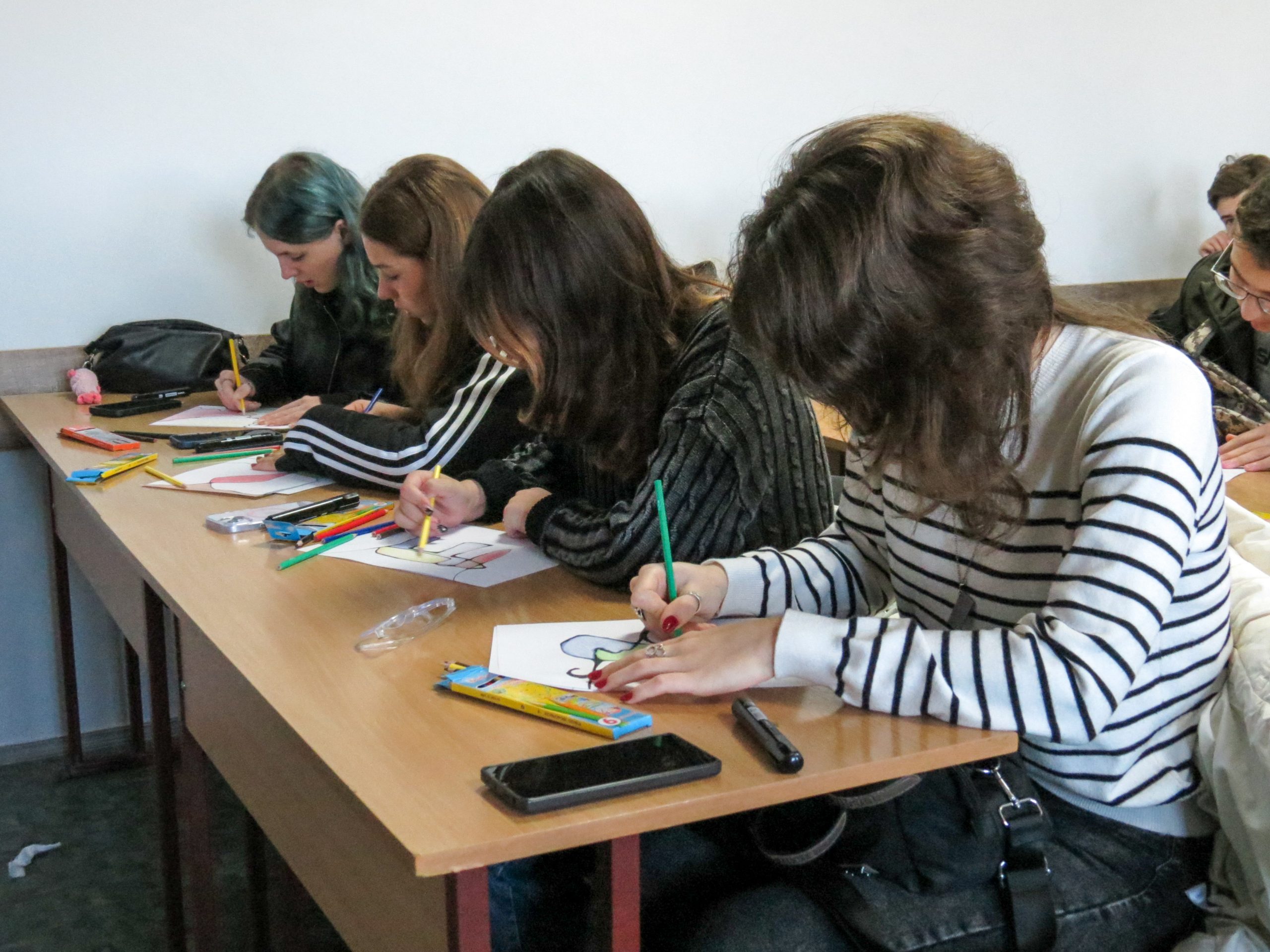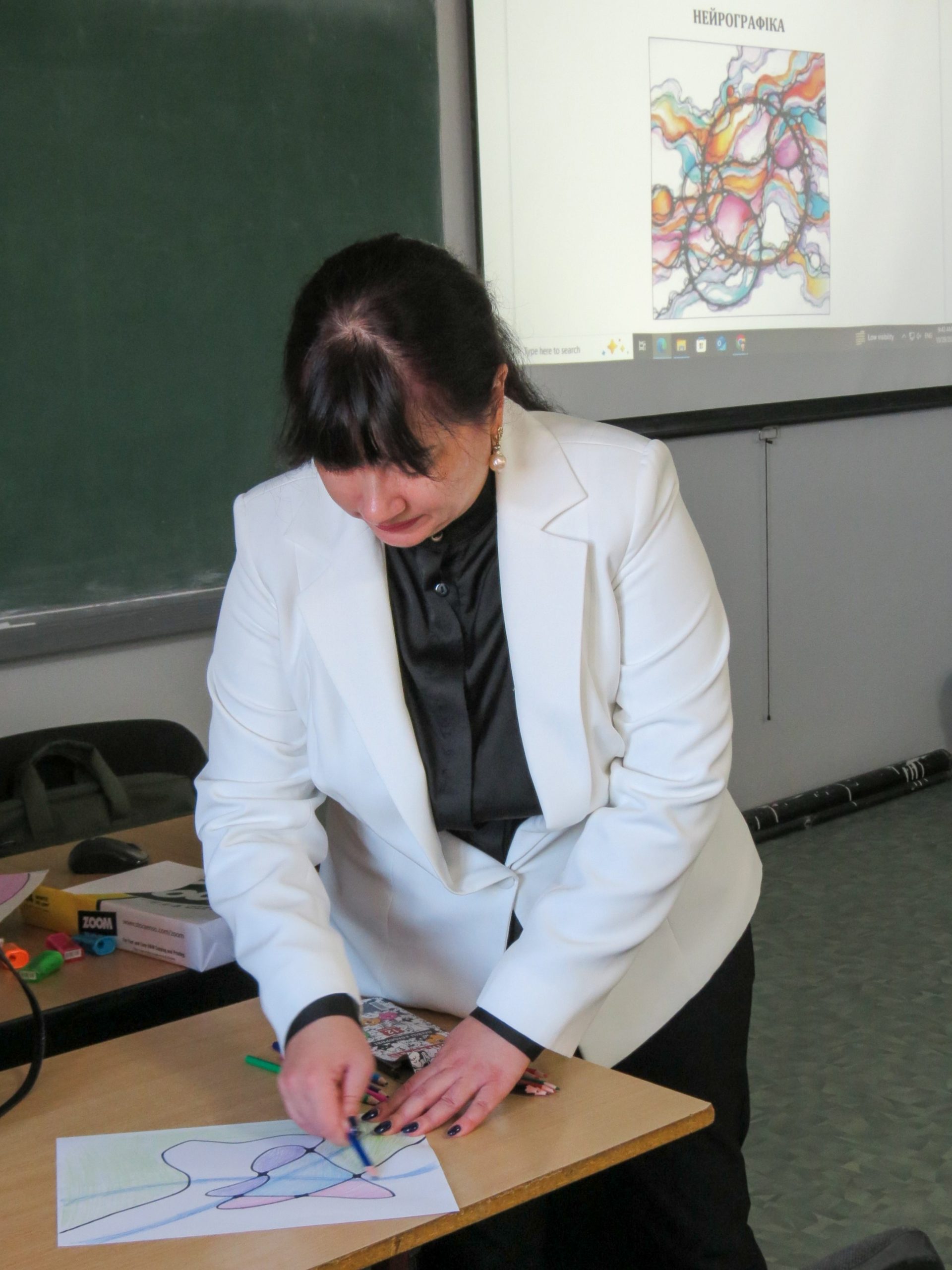 Кафедра дизайну провела заняття з арттерапії, під час якого учні створювали композиції в техніці нейрографіки. Уявивши свою мрію, школярі візуалізували її у вигляді інсайт-ліній, а заокруглюючи кути – символічно долали внутрішні бар’єри. Завершальним етапом стало додавання кольору, що надало роботам емоційної глибини. Творчі роботи мали позитивний вплив на емоційний стан учасників і вразили викладачів креативністю. Автори найоригінальніших рішень отримали подарунки для подальшої художньої діяльності.