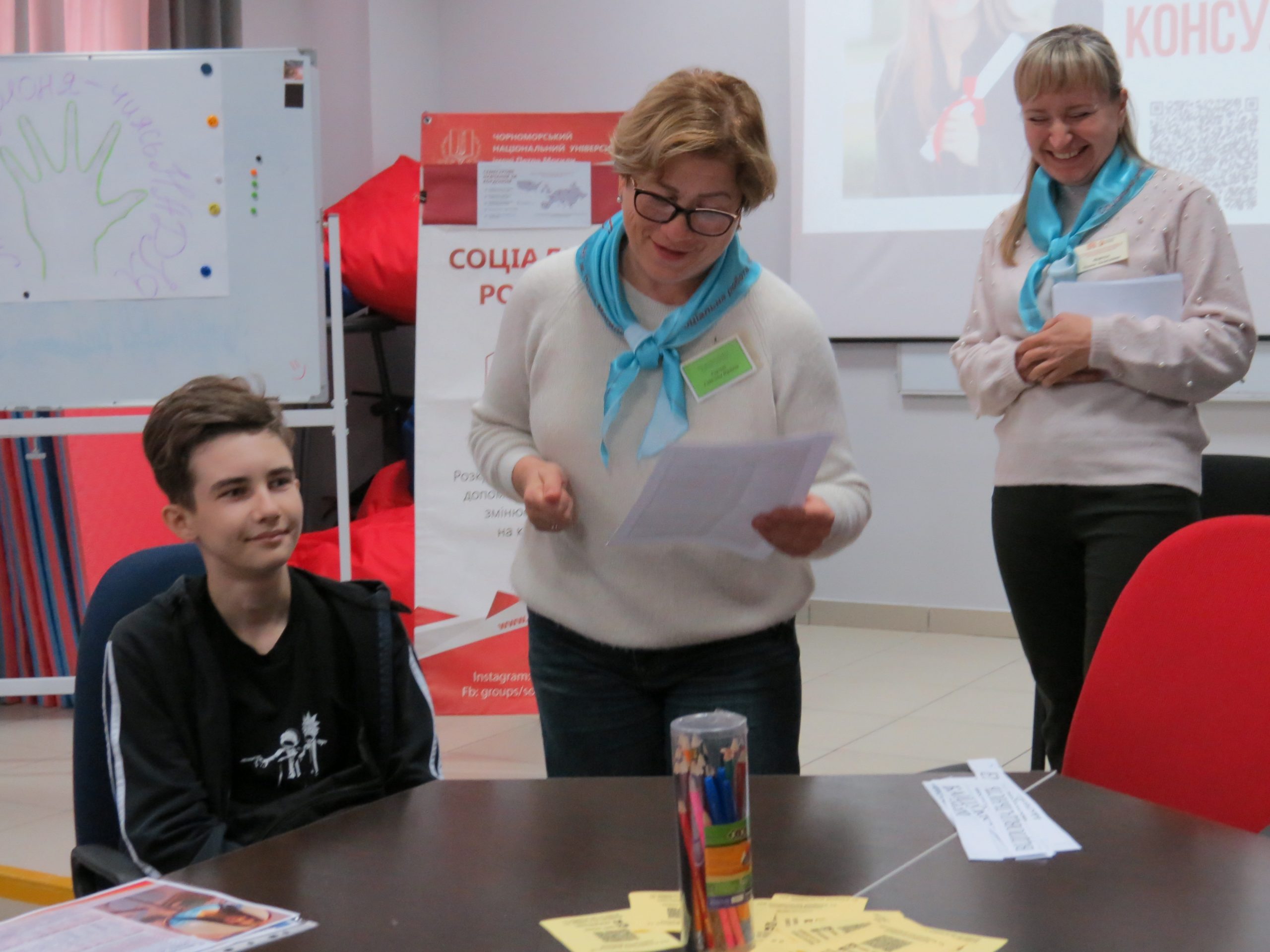 Інтерактивний квест-тренінг «Соціальний працівник у дії» поєднав гру «Міфи про соціальну роботу» з проєктивними методиками «Не дай людині впасти» та «Долонька допомоги». Учасники дізналися про сутність професії соціального працівника, її гуманістичну місію – допомагати, підтримувати, бути поруч. Завершенням зустрічі стали теплі побажання та солодкі подарунки з передбаченнями – щирий жест, що залишив емоційний слід.