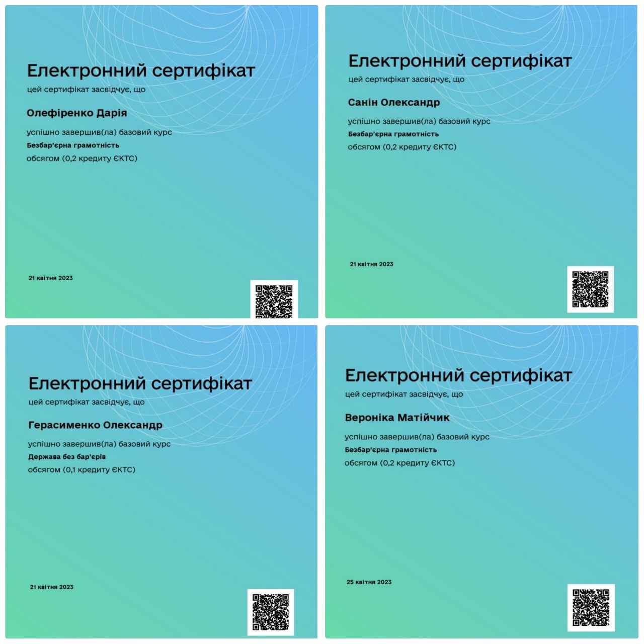 Для закріплення знань студенти пройшли онлайн-курси «Безбар’єрна грамотність» та «Держава без бар’єрів» на державній онлайн-платформі «Дія». Адміністрація факультету політичних наук підтримувала та сприяла розширенню знань з безбар’єрності.