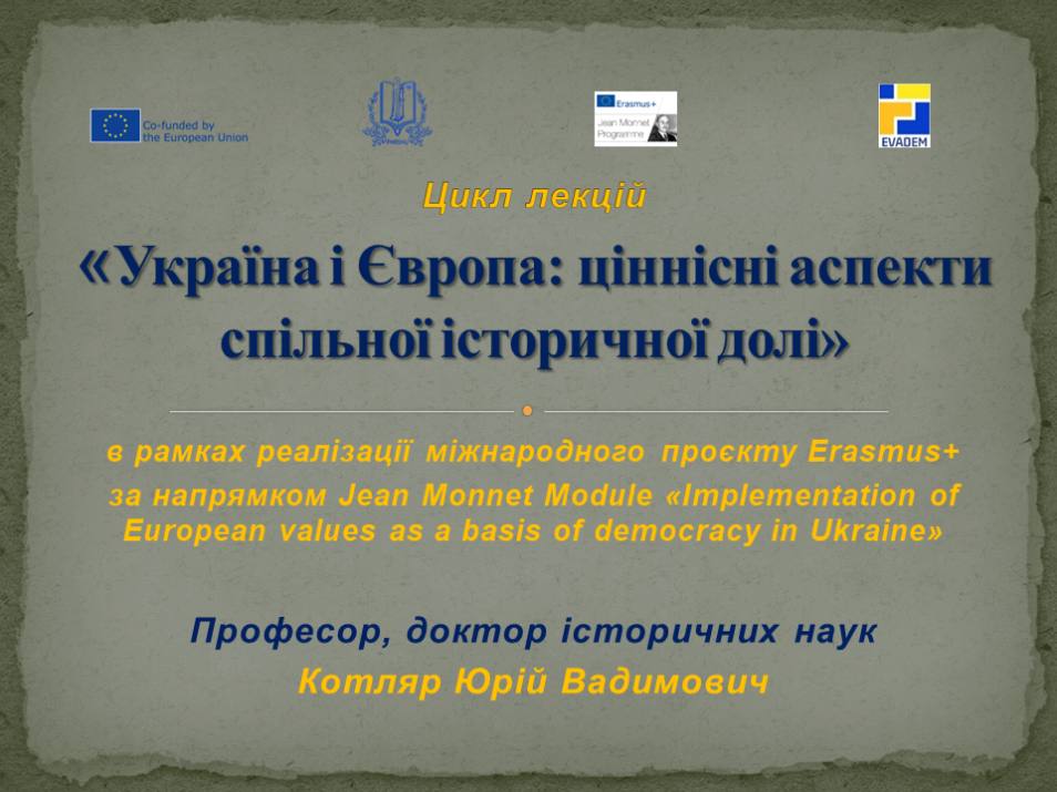 Курс відбувається в межах реалізації міжнародного проєкту Erasmus+ за напрямком Jean Monnet Module «Implementation of European values as a basis of democracy in Ukraine».