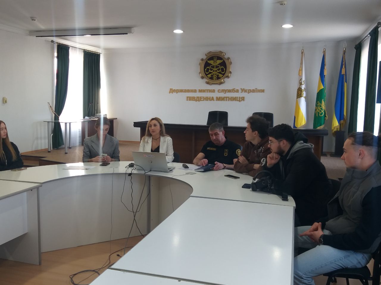 Начальниця відділу роботи з персоналом Ксенія Ільясова розповіла про переваги служби в митних органах, особливості статусу державного службовця, а також ознайомила студентів із деталями щорічного всеукраїнського конкурсу «Код митника», який проводить Державна митна служба України. Вона запросила студентів проходити практику у Південній митниці.