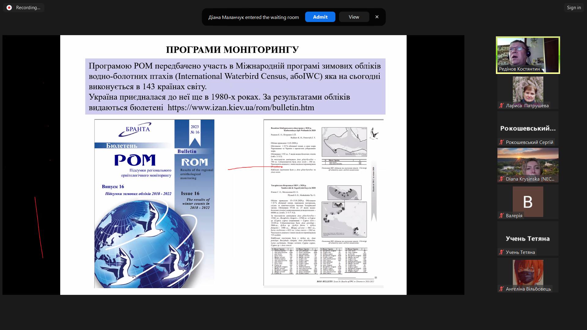 моніторинг птахів (у т.ч. міжнародні програми)