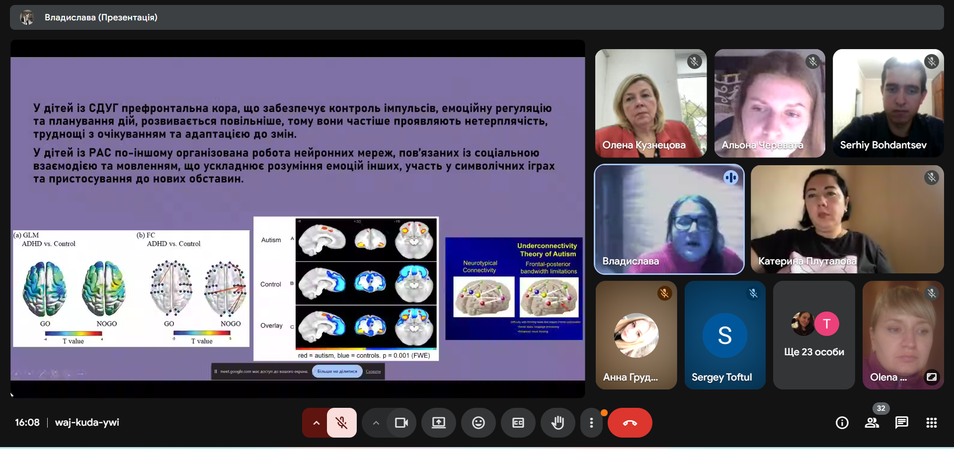 Тематика зустрічі є особливо актуальною для студентів спеціальностей 016.01 «Логопедія та психокорекційний супровід» та І10 «Соціальна робота та консультування» бакалаврського та магістерського рівнів освіти. Лекторка детально розкрила основні симптоми розладу дефіциту уваги та гіперактивності у дітей, сучасні підходи до його діагностики та значення раннього виявлення для подальшого розвитку дитини.
