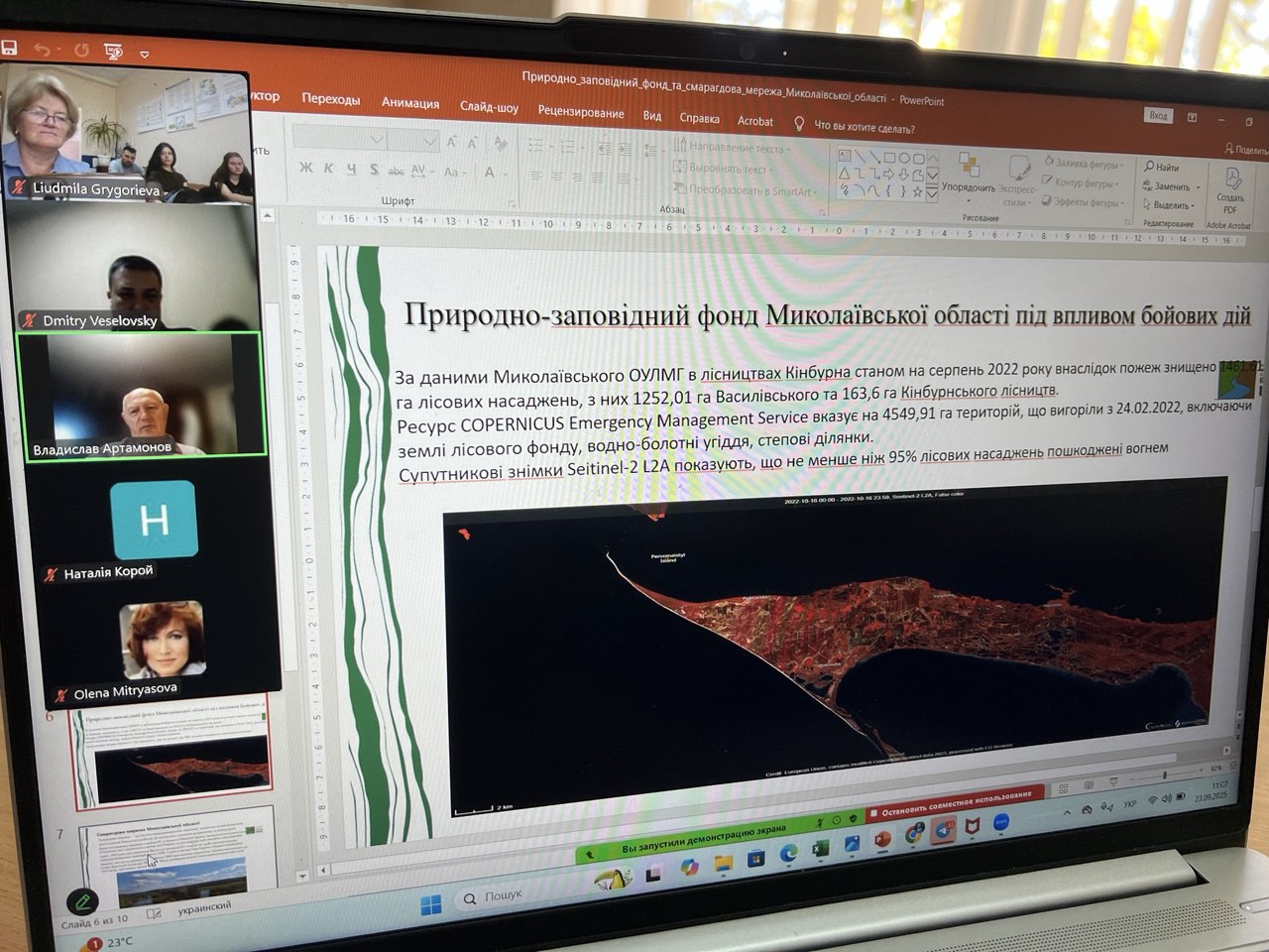 23.09.2025 р.для здобувачів вищої освіти трьох рівнів навчання за спеціальністю Екологія відбулася гостьова лекція від керівника НПП Бузький гард Артамонова В.А. на тему Природно-заповідний фонд та Смарагдова мережа Миколаївської області…Віктор Альбертович розповім присутнім про Заповідні території Миколаївщини, які займають лише 3,18 % площі області і це є одним з найнижчих показників в країні Показано, що .Ресурс COPERNICUS Emergency Management Service вказує на 4549,91 га територій, що вигоріли з 24.02.2022, включаючи землі лісового фонду, водно-болотні угіддя, степові ділянки.