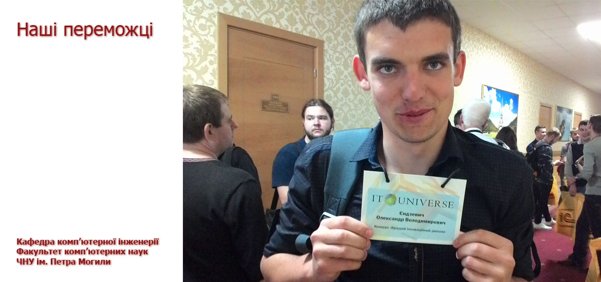 Леонов Артем на ІІ етапі Всеукраїнського конкурсу студентських наукових робіт зі спеціалізацій «Прикладна геометрія, інженерна графіка та технічна естетика», який відбувся 22–26 квітня 2019 р. у Національному технічному університеті «Харківський політехнічний інститут» диплом ІІ ступеню отримав студент 4-ого курсу спеціальності “Компютерна інженерія”.