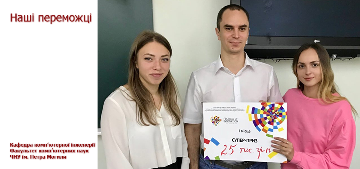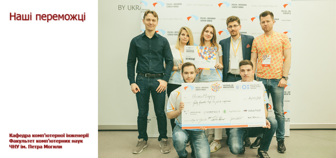 Переможці Всеукраїнського фестивалю інновацій. Третє місце виборола команда миколаївської «Могилянки» за проект Home Mappy. Основна мета розробки – допомогти людям зі слабким зором або обмеженими можливостями легко знаходити предмети у своєму домі. Розробка розпізнає об’єкт і за допомогою голосового супроводження може довести людину до необхідного місця. До складу команди входять студенти факультету комп’ютерних наук (Ірина Сімакова, Артем Шевченко) та факультету економічного наук (Яна Тараненко, Святослав Лінчевський). Також участь у розробці проекту брали участь студенти спеціальності «Комп’ютерна інженерія» Сергій Рибченко, Костянтин Плюснін, Руслан Чернявський, Дмитро Чумаченко. Ментор команди — старший викладач кафедри комп’ютерної інженерії Іван Бурлаченко.