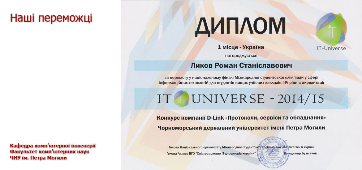 2016 р. – захистив кандидатську дисертацію за спеціальністю 05.13.05 – Комп’ютерні системи та компоненти
