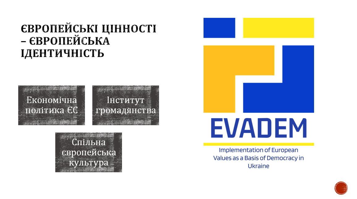 Анна Соловйова окреслила основні етапи формування європейських цінностей, які з плином часу були прописані в Лісабонському договорі. До них належать повага до людської гідності, свобода, демократія, рівність і верховенство права. Також лекторка розглянула поняття європейської ідентичності.