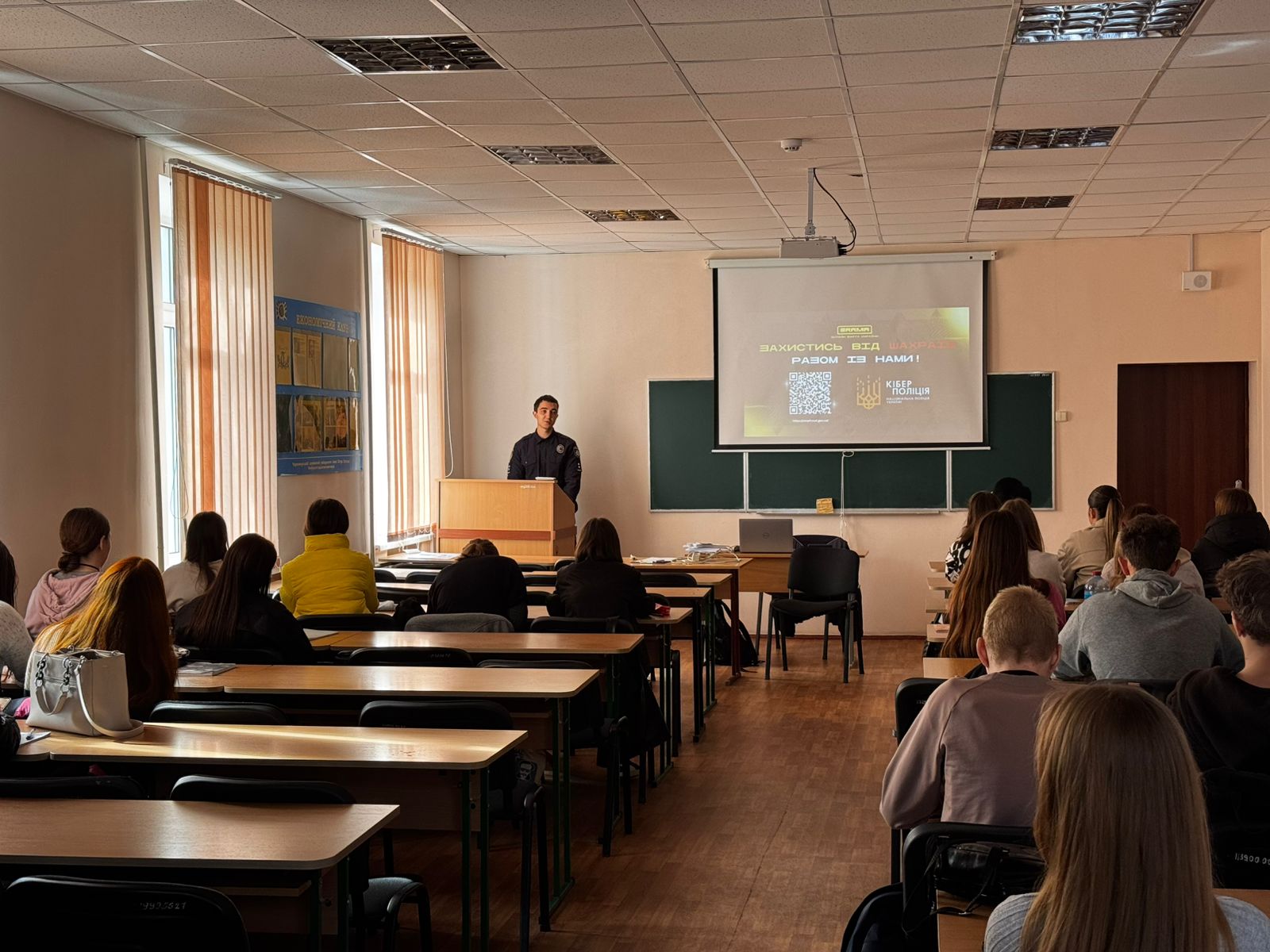 14 та 15 жовтня 2025 року студенти 1-го та 2-го курсів факультету економічних наук мали нагоду долучитися до пізнавальної презентації від співробітників Кіберполіції України на тему: «Кібербезпека в повсякденному житті. Протидія онлайн-шахрайству».