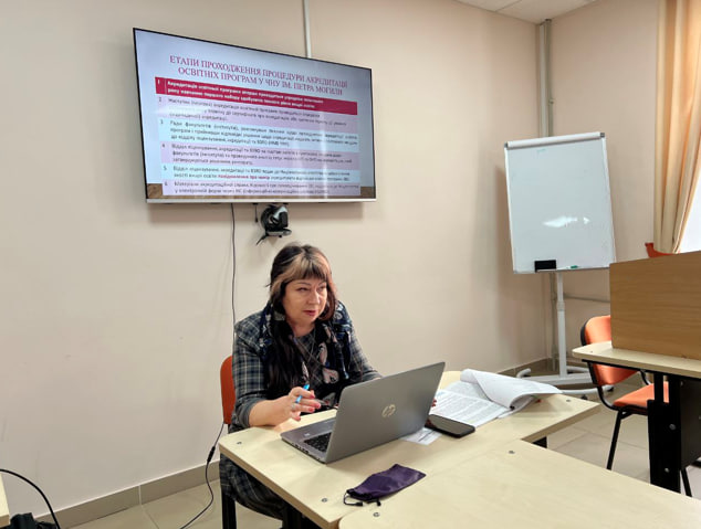 Після обговорення нагальних питань для НПП спеціальності В11/035 Філологія була підготовлена презентація від відділу ліцензування, акредитації та ВЗЯО під назвою «Акредитація освітніх програм в ЧНУ імені Петра Могили».