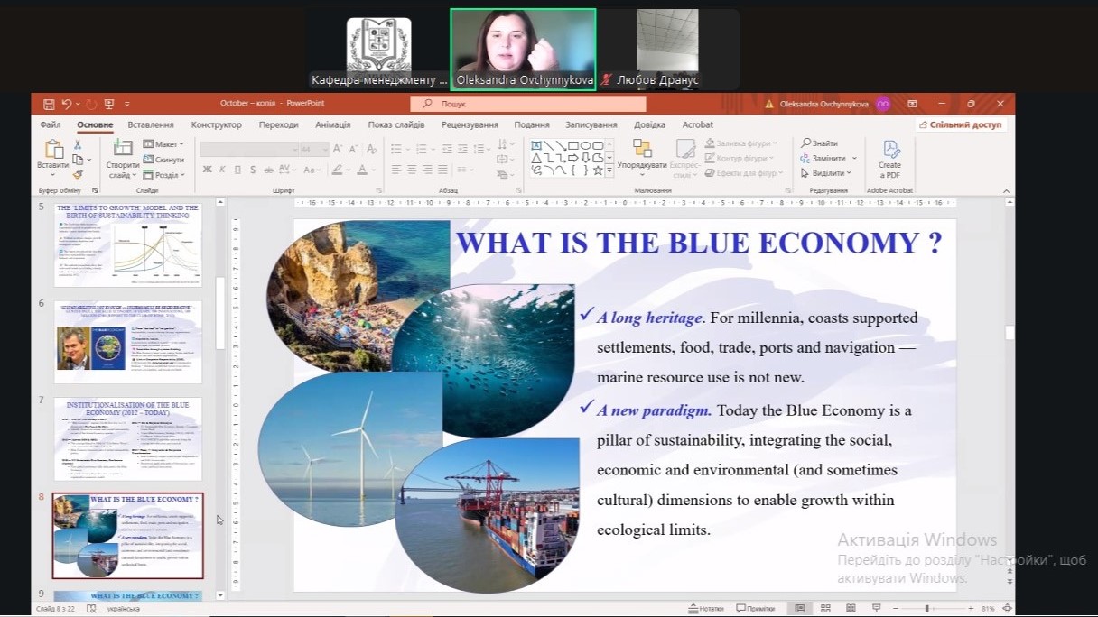 Колектив кафедри менеджменту та студенти висловили щиру подяку за змістовну дискусію, корисну інформацію та нові знання щодо сутності й перспектив розвитку блакитної економіки в Україні та світі.