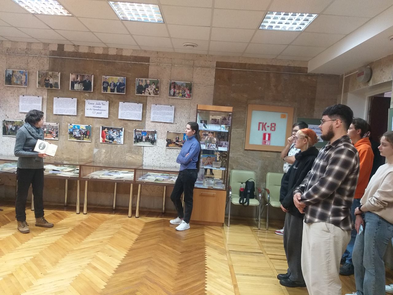 Особливо цікавою була розповідь про історію бібліотеки, яка саме цими днями відзначає своє 125-річчя. Студенти мали змогу побачити архівні книги сторічної давнини з численними штампами бібліотек, на балансі яких вони перебували.