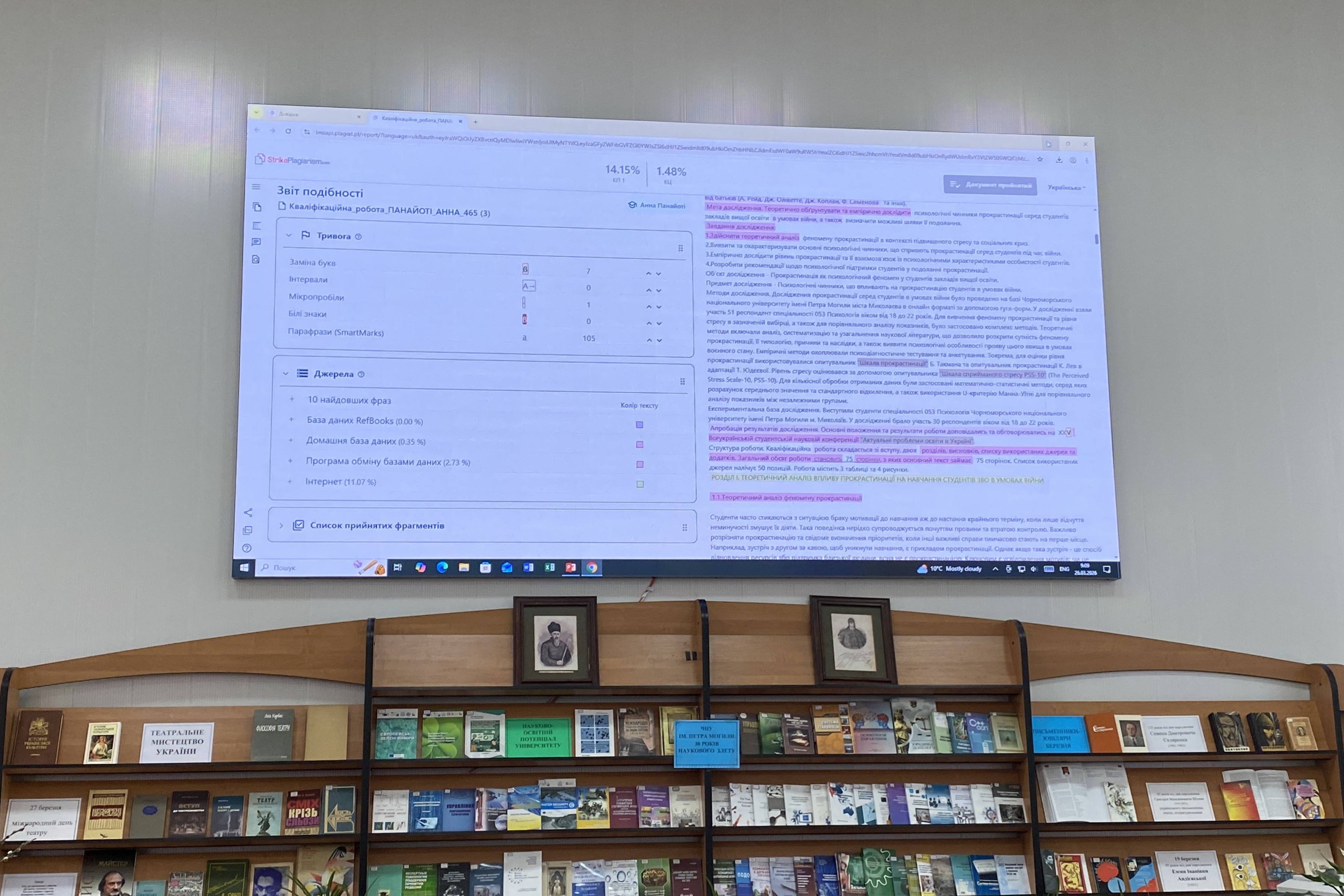 26 березня 2026 року студенти першого (бакалаврського) рівня спеціальностей «Спеціальна освіта. Логопедія» та «Соціальна робота та консультування» в межах вивчення дисципліни «Основи наукової діяльності та академічна доброчесність» відвідали захід у бібліотеці Чорноморського національного університету імені Петра Могили, організований фахівцями бібліотеки. Тема зустрічі – «Перевірка на плагіат: контроль чи допомога».