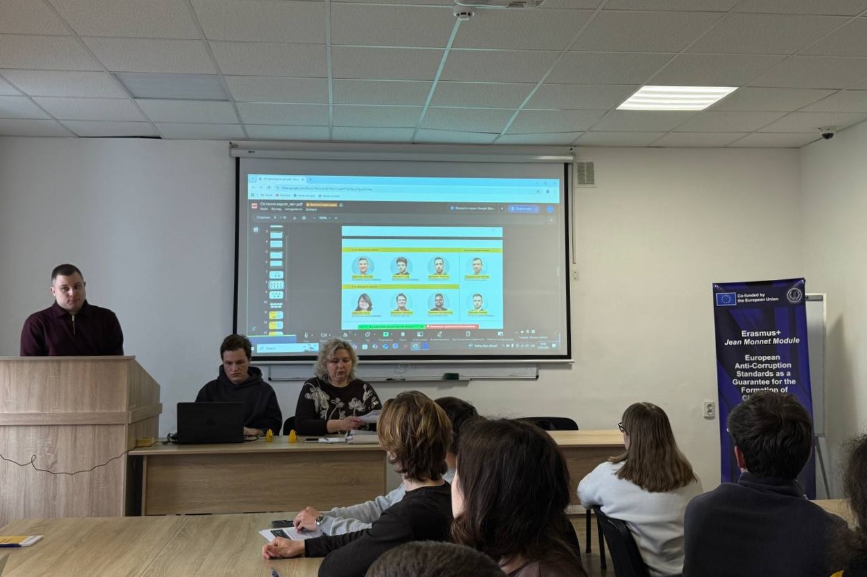 On 12 February 2026, the first seminar-training session of the course was held with guest speaker Dmytro Shchogolev, a graduate of the Faculty of Law and postgraduate student at Petro Mohyla Black Sea National University. He is the chairman of the Progressive Mykolaiv NGO, chairman of the NGO “Association of Lawyers of Ukraine” (a memorandum of cooperation was signed in October 2024), chairman of the Council on Youth Policy under the Mayor of Mykolaiv, and a member of the Public Control Council at the National Anti-Corruption Bureau of Ukraine (NABU).