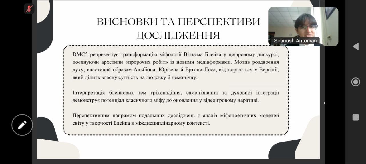 Отже, актуалізація форми індивідуального менторства у науково-освітній сфері довело свою ефективність. Студентка-менті, Антонян Сірануш під час конференції успішно виголосила доповідь та підготувала у співавторстві з науковим керівником, Косарєвою Г.С., тези до збірника «Могилянські читання – 2025». Така самореалізація менті через дослідницьку діяльність та підтримка менторки сприяє зростанню як у професійній, так і у науково-освітній сферах. Зауважимо, що Антонян Сірануш є також активною учасницею Студентського наукового товариства факультету філології.