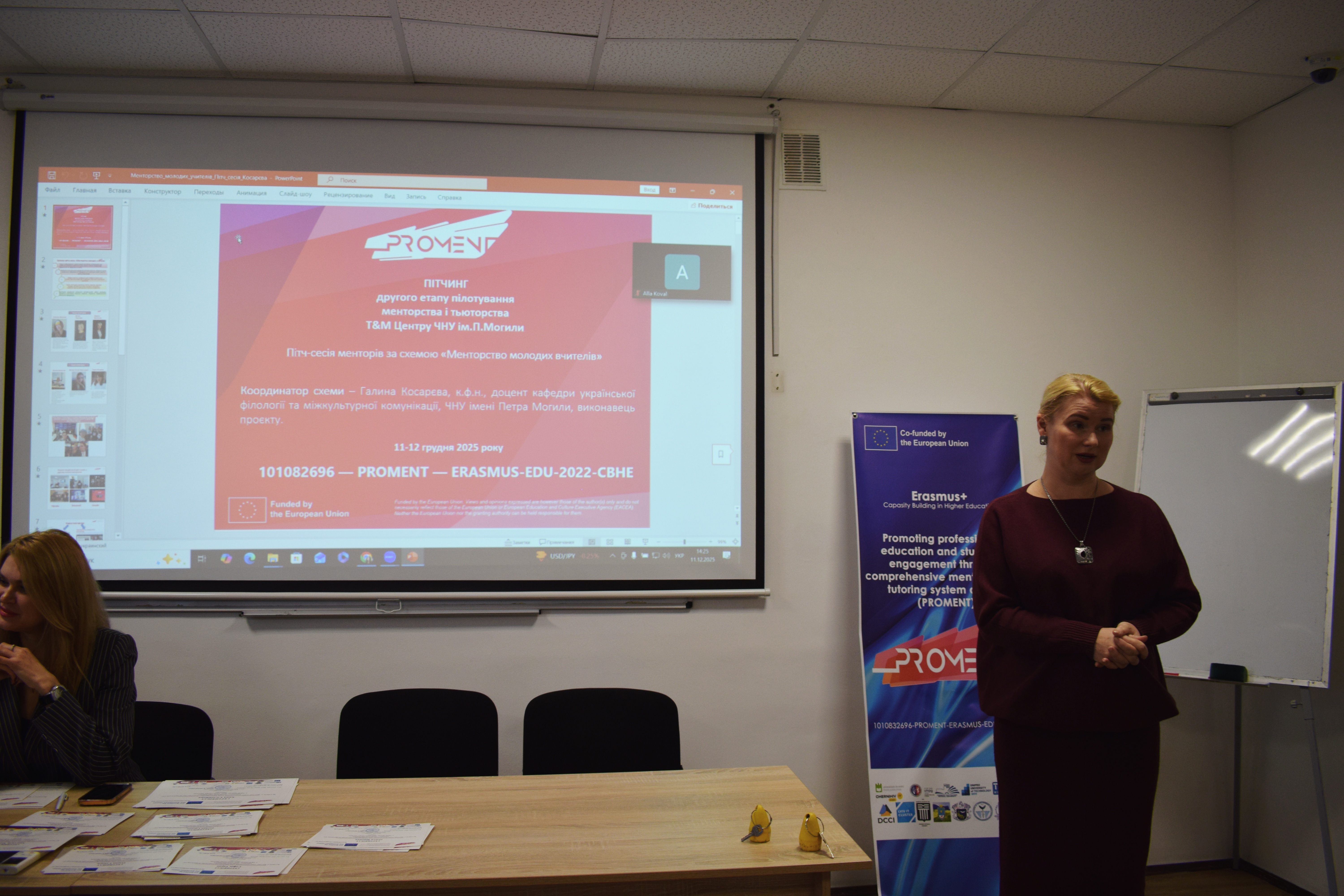 11–12 грудня 2025 року в Чорноморському національному університеті імені Петра Могили відбувся фінальний пітчинг другого етапу пілотування схем менторства та тьюторства в межах проєкту ЄС Еразмус+ 101082696-PROMENT «Сприяння професійній освіті та активній участі студентів через становлення комплексної системи менторства та тьюторства у закладах вищої освіти». Захід пройшов у гібридному форматі та об’єднав менторів, тьюторів, менті й тьюті з різних факультетів і сфер професійної діяльності.