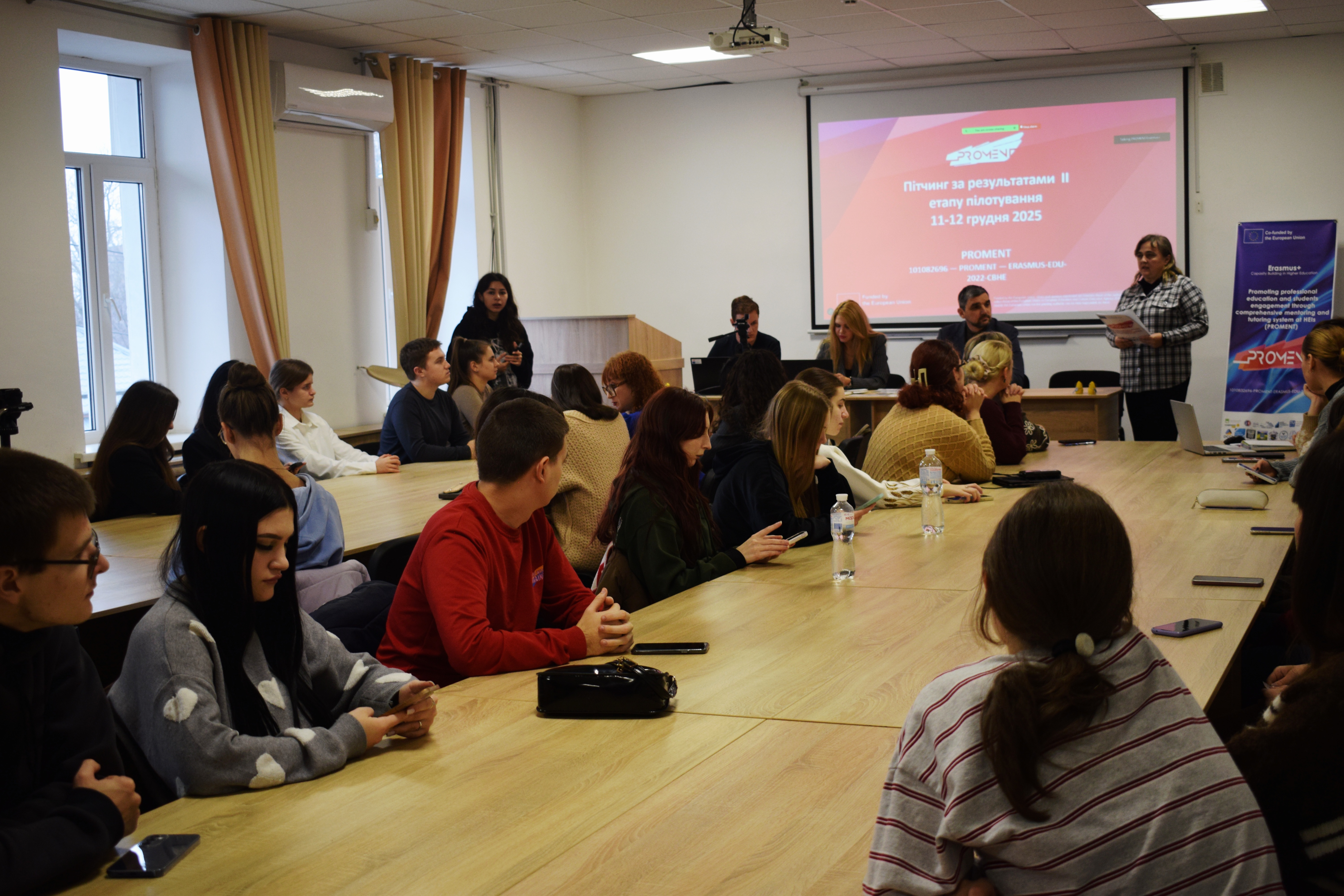 11–12 грудня 2025 року в Чорноморському національному університеті імені Петра Могили відбувся фінальний пітчинг другого етапу пілотування схем менторства та тьюторства в межах проєкту ЄС Еразмус+ 101082696-PROMENT «Сприяння професійній освіті та активній участі студентів через становлення комплексної системи менторства та тьюторства у закладах вищої освіти». Захід пройшов у гібридному форматі та об’єднав менторів, тьюторів, менті й тьюті з різних факультетів і сфер професійної діяльності.