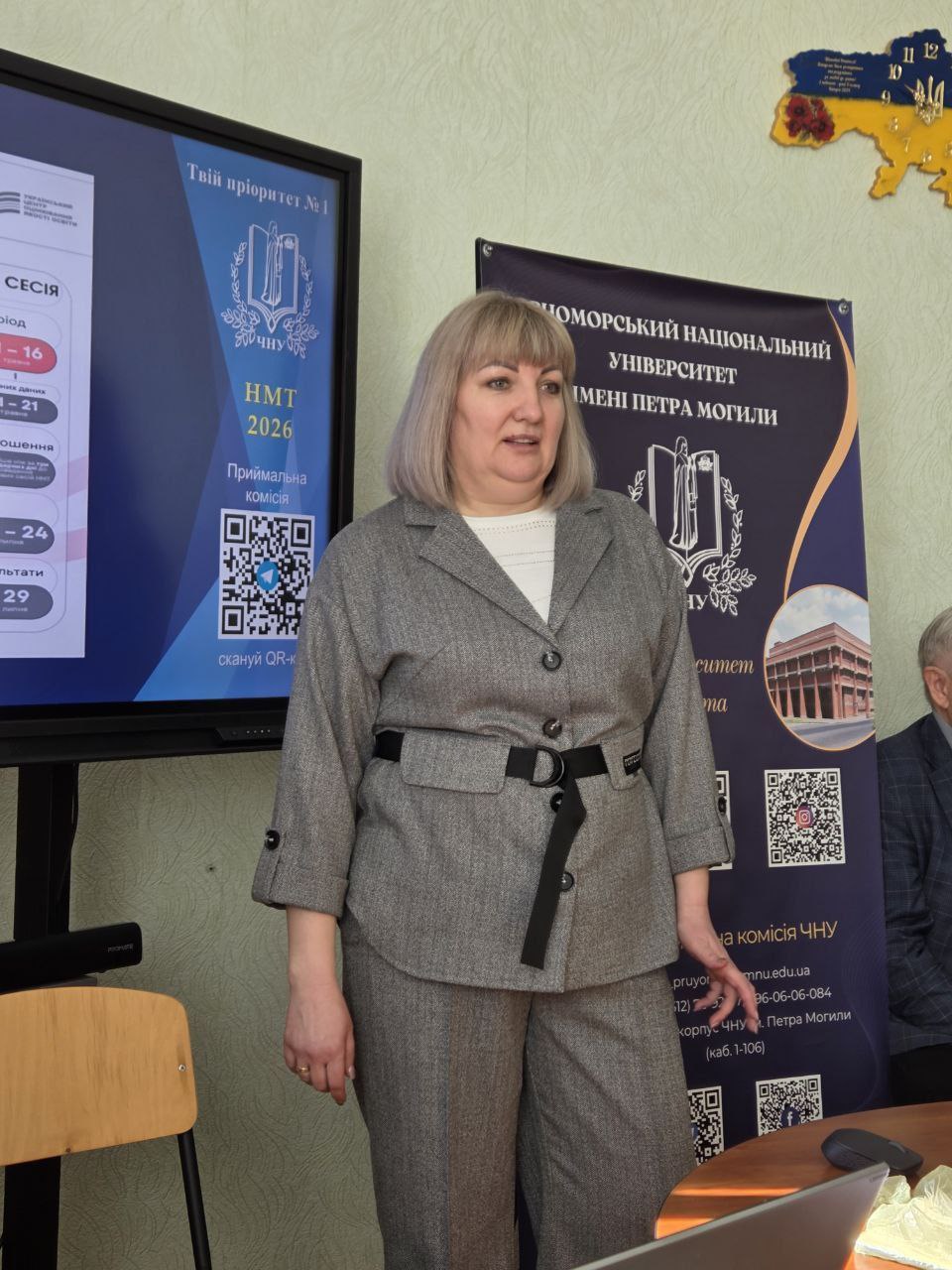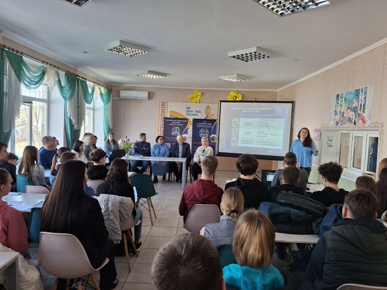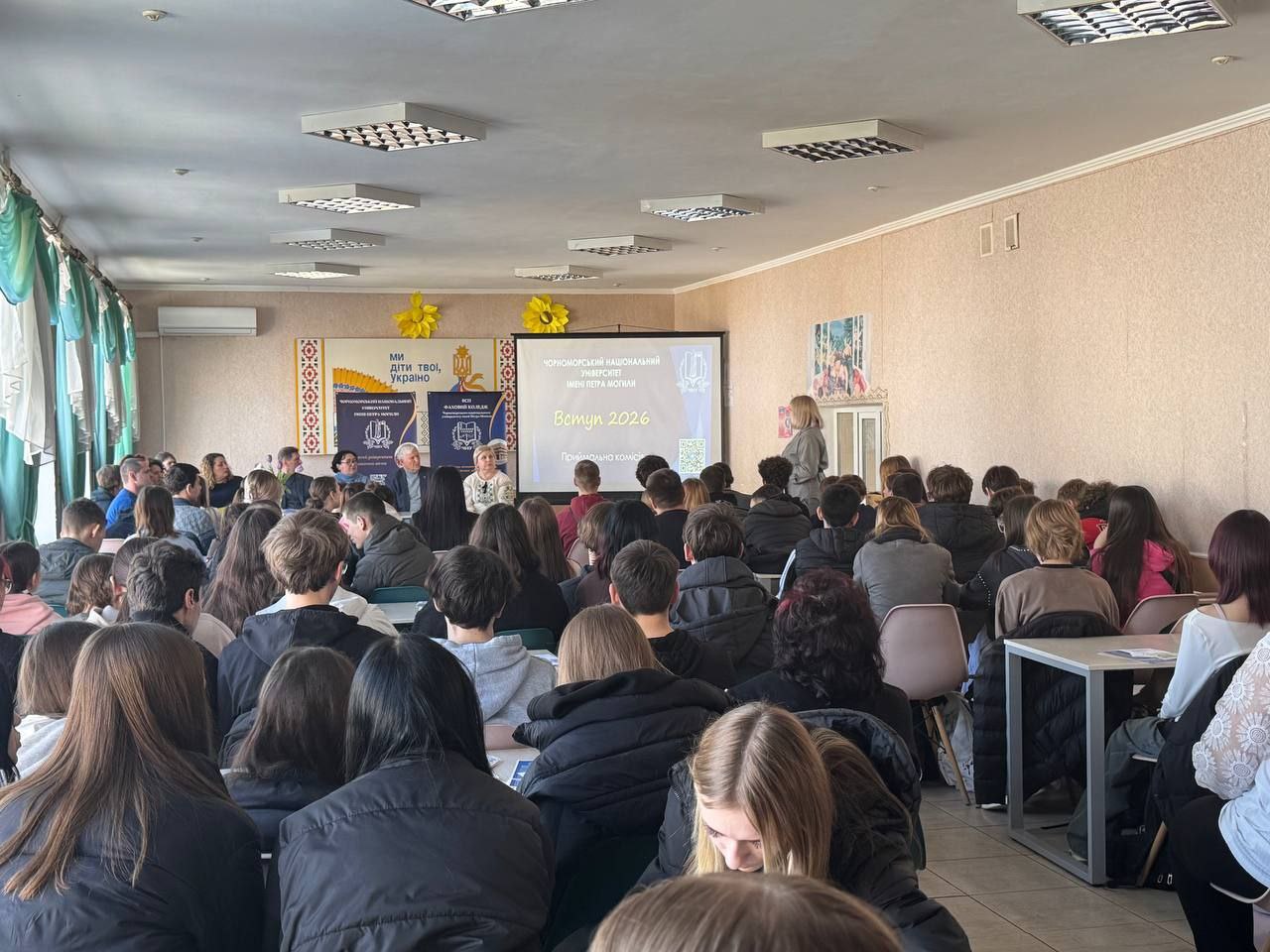 Під час зустрічей відповідальна секретарка приймальної комісії Вікторія Чорна ознайомила майбутніх вступників з умовами вступної кампанії, особливостями подання документів та можливостями навчання в університеті. Учням також презентували факультети ЧНУ імені Петра Могили, розповіли про освітні програми та спеціальності, за якими здійснюється підготовка фахівців.