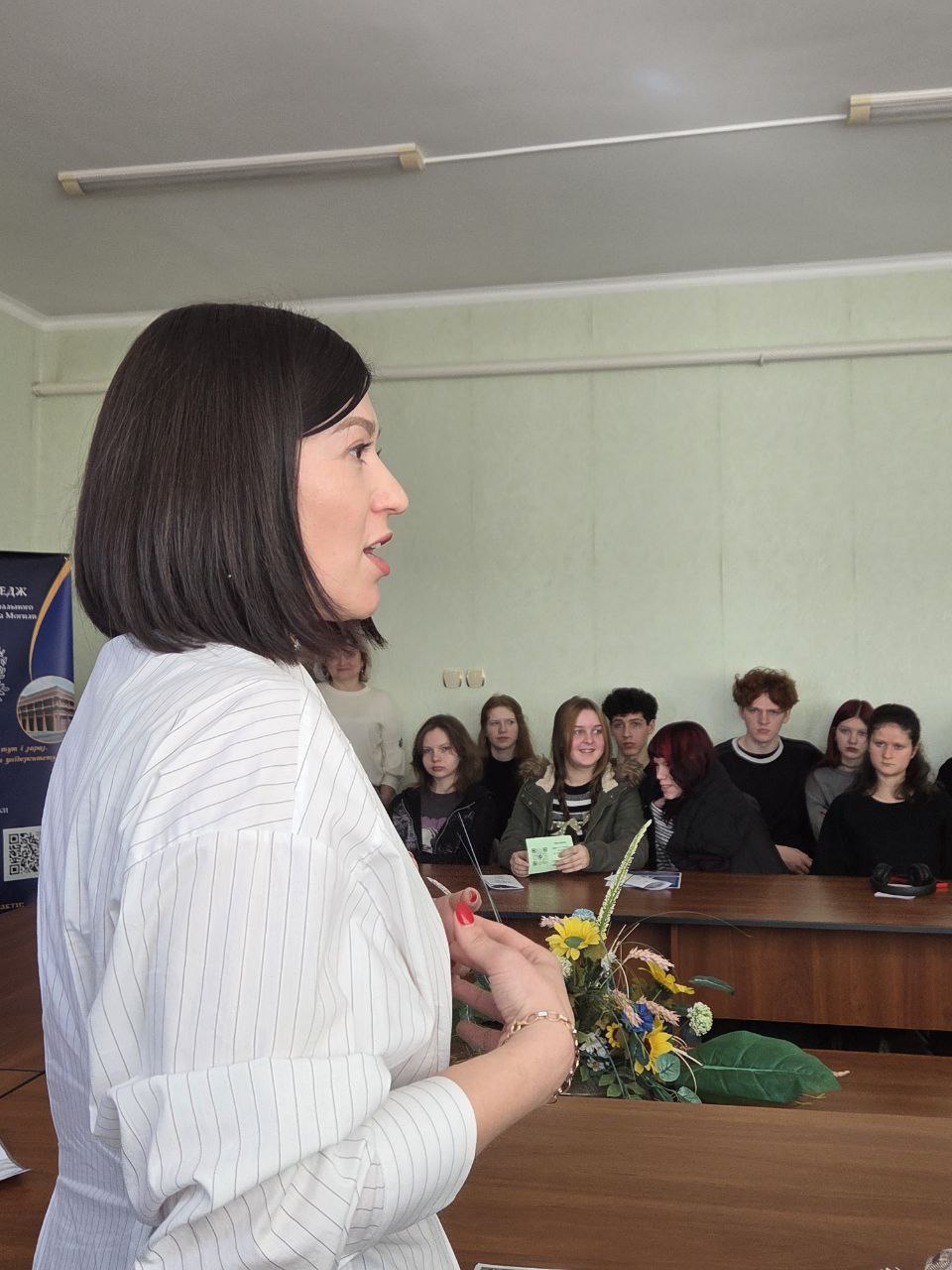 Окрему увагу приділили можливостям фахової передвищої освіти та діяльності коледжу університету, а також програмам довузівської підготовки – підготовчим курсам і додатковим освітнім можливостям для майбутніх абітурієнтів. Про це абітурієнтам розповіла директорка відокремленого структурного підрозділу «Фаховий коледж ЧНУ імені Петра Могили».