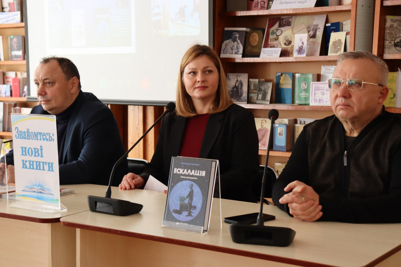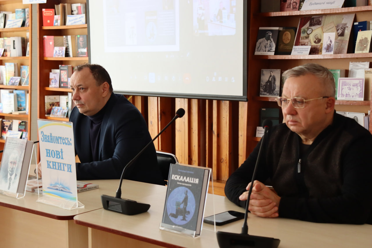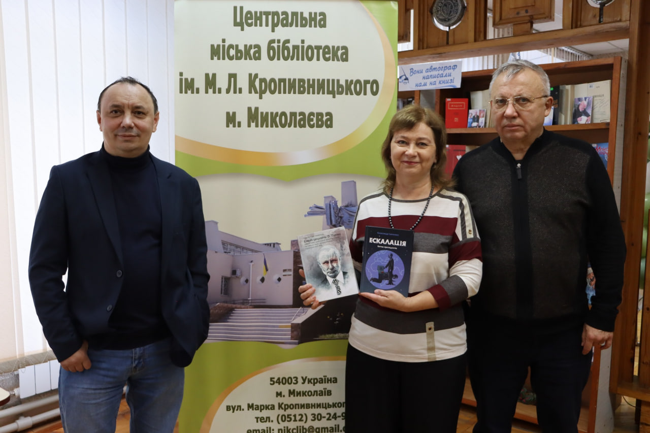 29 жовтня 2025 року у Центральній міській бібліотеці ім. М.Л. Кропивницького спільно з Чорноморським національним університетом ім. Петра Могили відбулася презентація книги Павла Гай-Нижника, історика, політолога, поета, провідного наукового співробітника Інституту політичних і етнонаціональних досліджень ім. І.Ф. Кураса НАН України, доктора історичних наук, «Сенсові ідеологеми В. Путіна: наративи ціннісних маніпуляцій та casus bell геополітики і геостратегії РФ», у якій розкриває механізми пропаганди та логіку російської агресії. А також першого тому політичного трилера Олександра Савченка, відомого економіста, фінансиста, дипломата, ректора Міжнародного інституту бізнесу, академіка Української академії геополітики та геостратегії, доктора економічних наук, «Ескалація. Битва президентів».