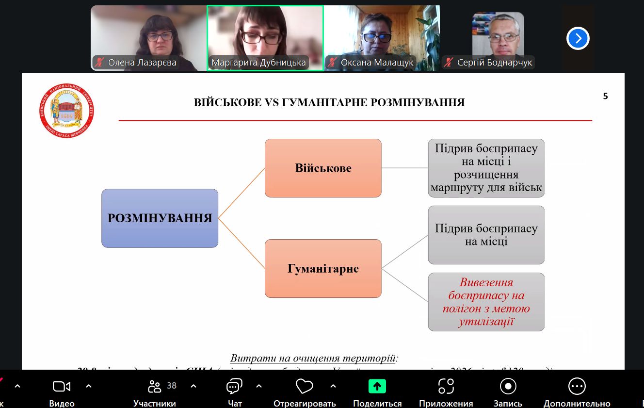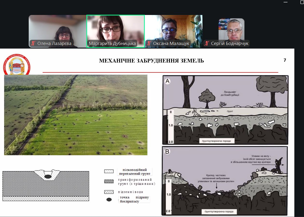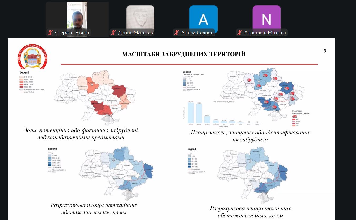 Під час засідання було обговорено одну з найактуальніших тем сьогодення, що стосується відновлення України: «Концепція сталого розвитку замінованих регіонів: екологічний та географічний виміри».