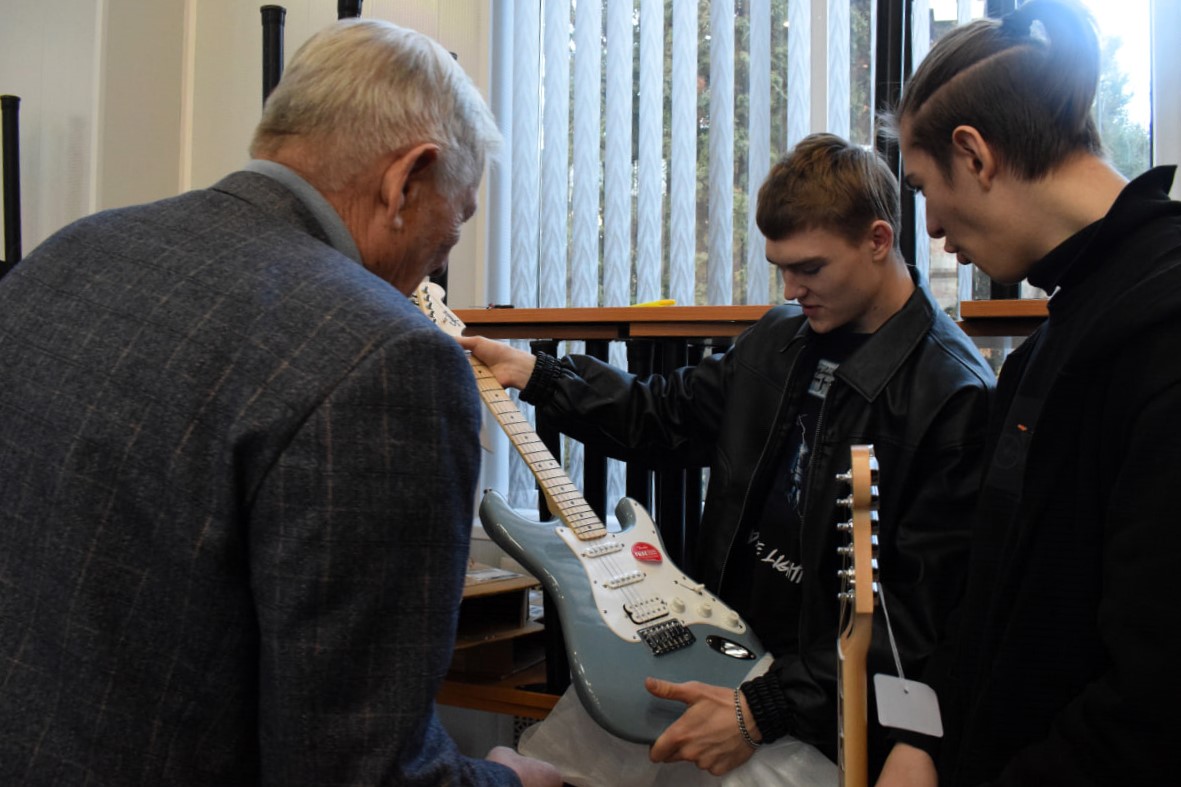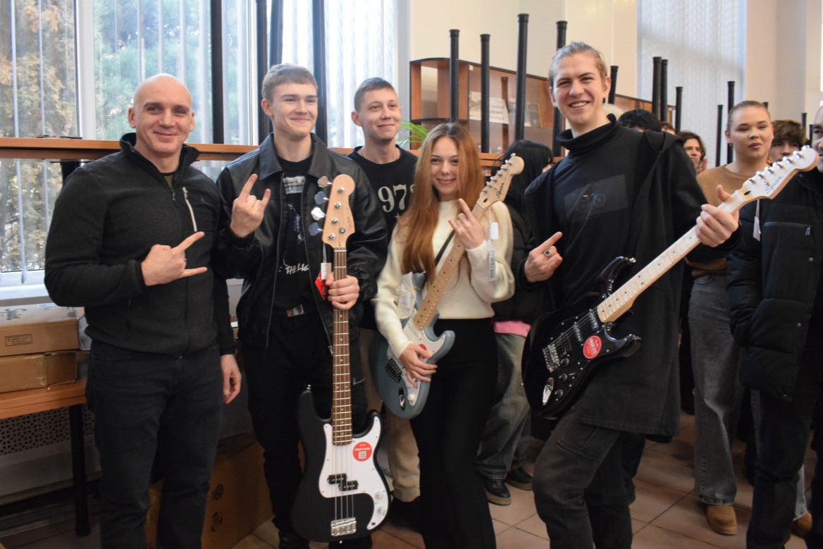 Олександр Сєнкевич подарував університету нові музичні інструменти: соло-гітару, ритм-гітару, бас-гітару та повну барабанну установку.