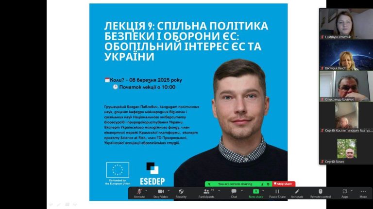 08 березня 2025 року відбулася відкрита лекція Грушецького Богдана Павловича, кандидата політичних наук, доцента кафедри міжнародних відносин і суспільних наук Національного університету біоресурсів і природокористування України, експерта Українського молодіжного фонду, члена експертної мережі Кримської платформи, експерт проєкту Science at Risk, … Читати далі Спільна політика безпеки і оборони ЄС – відкрита лекція експерта Богдана Грушецького