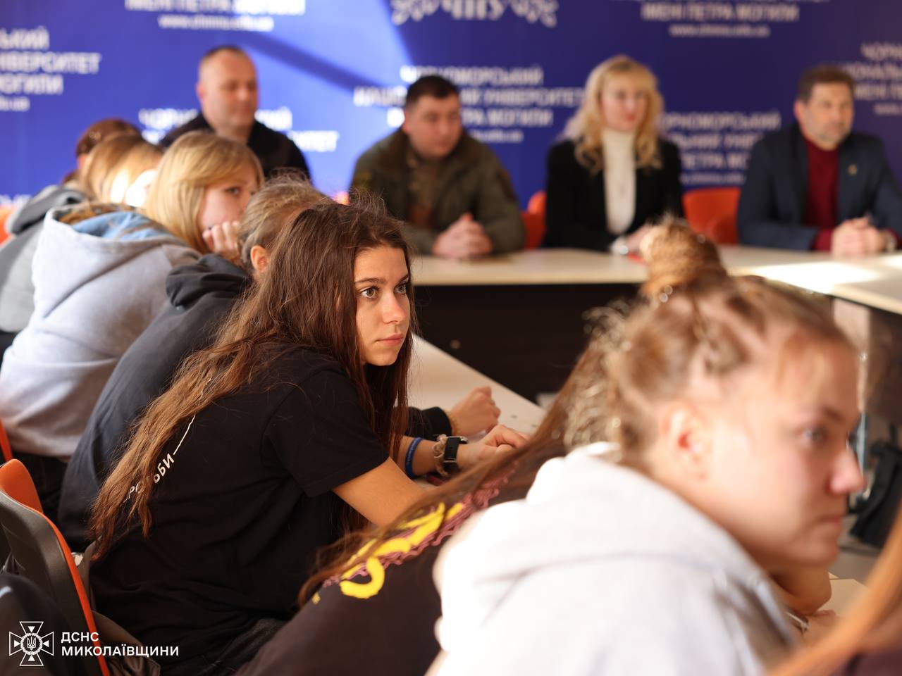 27 листопада співробітники органів структури МВС, а саме: помічник голови Національної поліції Миколаївської області з ветеранської політики Олег Завгородній, помічник начальника Головного управління з питань ветеранської політики ГУ ДСНС в Миколаївській області Павло Бондаренко та начальник психологічної служби ГУ ДСНС зустрілися зі студентами Чорноморського національного університету імені Петра Могили.