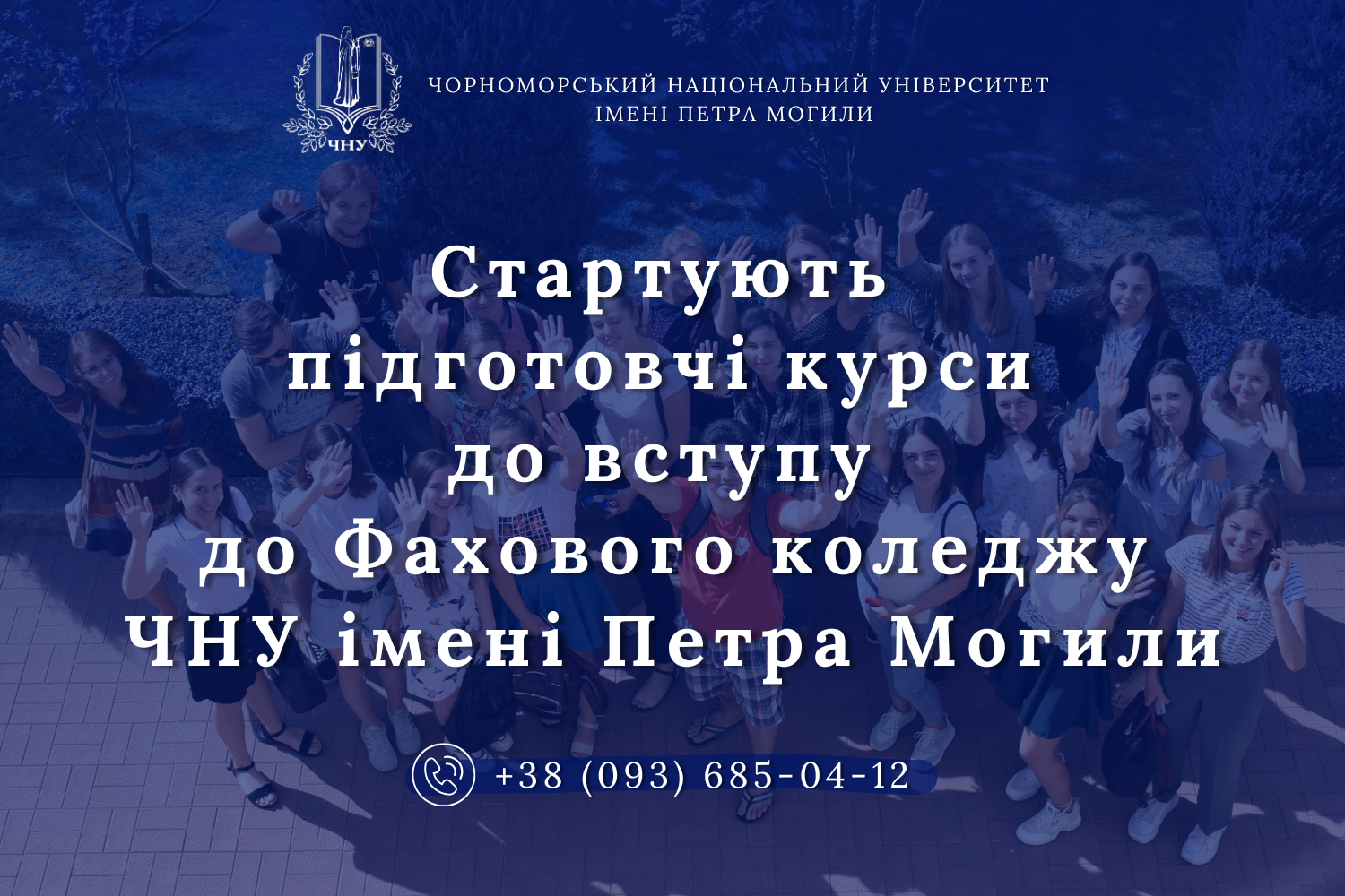 Відокремлений структурний підрозділ «Фаховий коледж Чорноморського національного університету імені Петра Могили» оголошує набір учнів 9-х та 11-х класів на підготовчі курси для вступу у 2026 році.