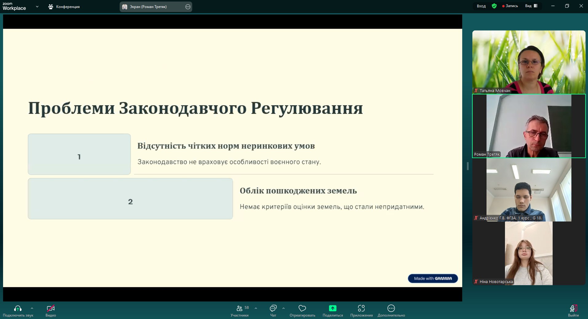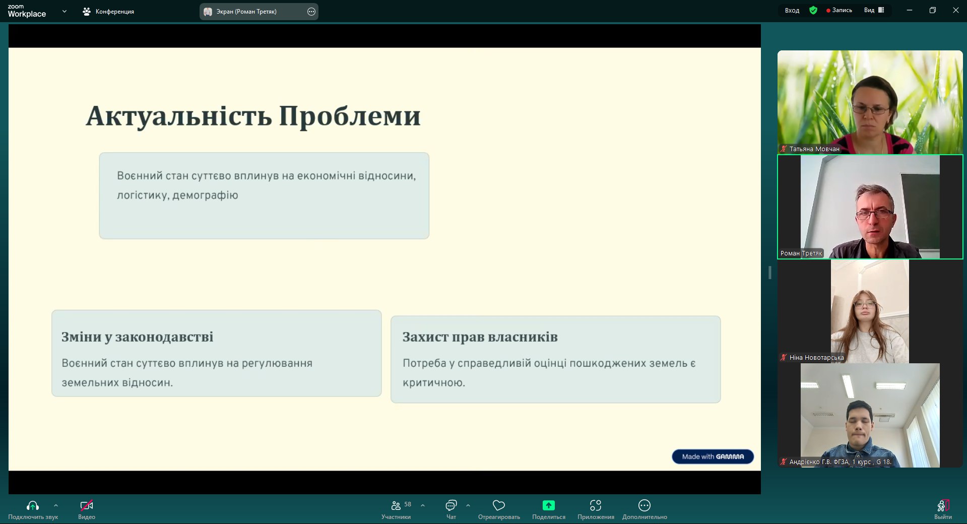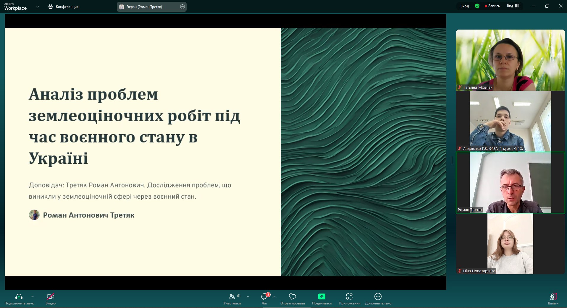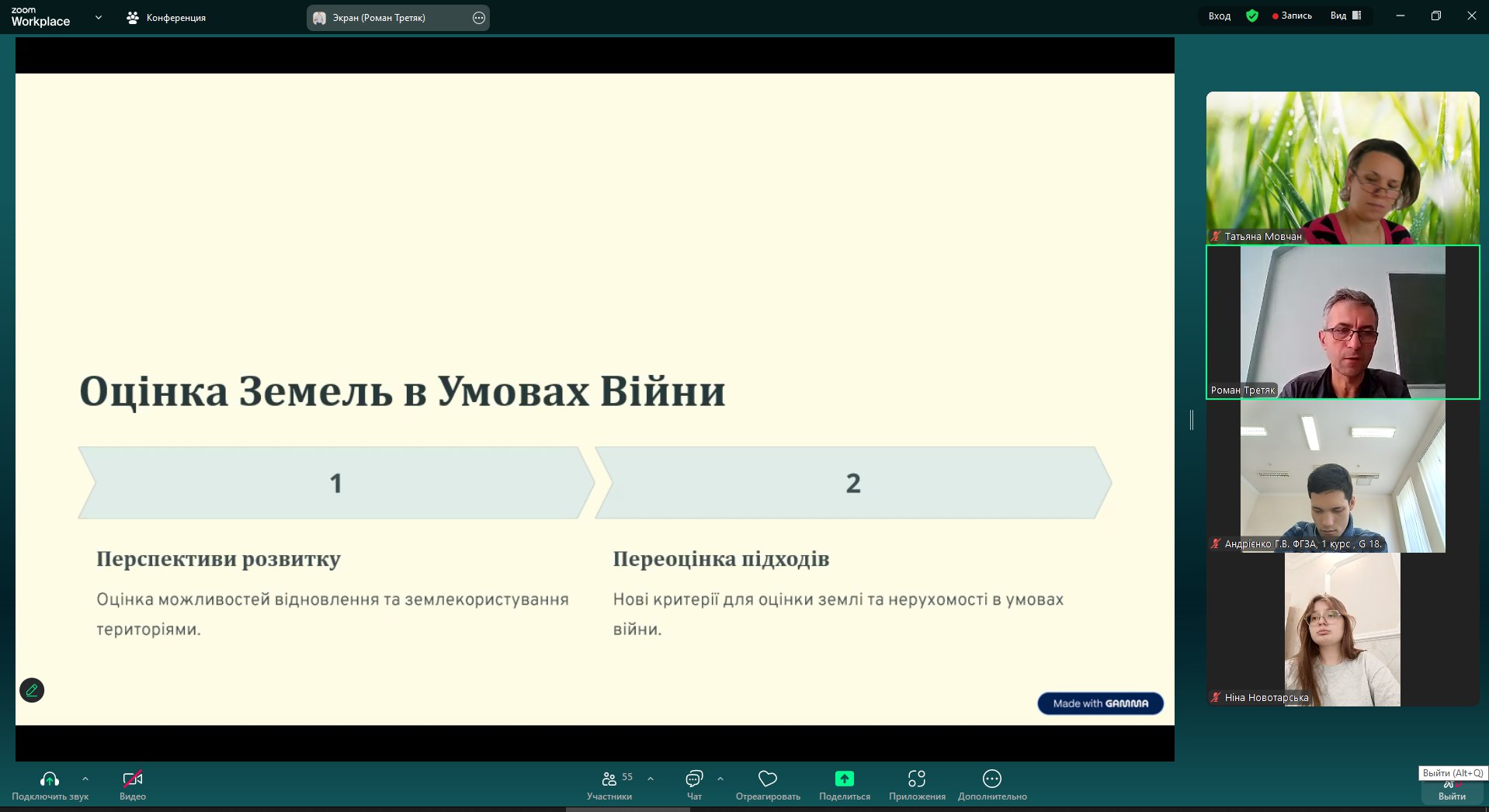 Це була чудова нагода для студентів дізнатися з перших вуст – від практикуючого фахівця та науковця – про реальні виклики, що виникають у процесі землеоціночної роботи.