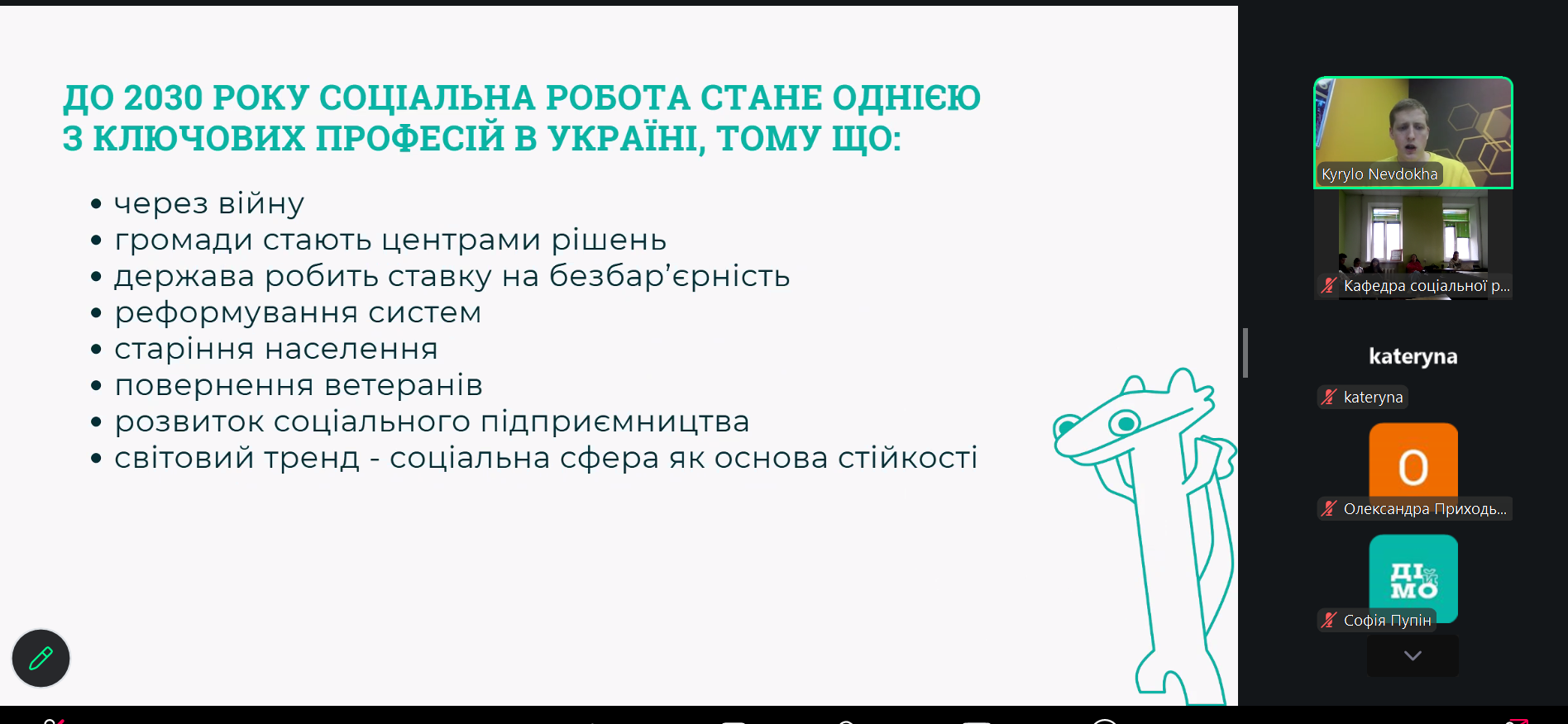 25 березня 2026 року в межах професійної підготовки здобувачів першого (бакалаврського) рівня спеціальності «Соціальна робота та консультування» відбулася змістовна зустріч студентів із керівником Офісу дітей та молоді «ДІйМО» при Міністерстві соціальної політики, сім’ї та єдності України – Кирилом Невдохою. Захід став важливою платформою для професійного діалогу, обговорення актуальних викликів у сфері роботи з дітьми та молоддю, а також ознайомлення студентів із сучасними практиками соціальної роботи.