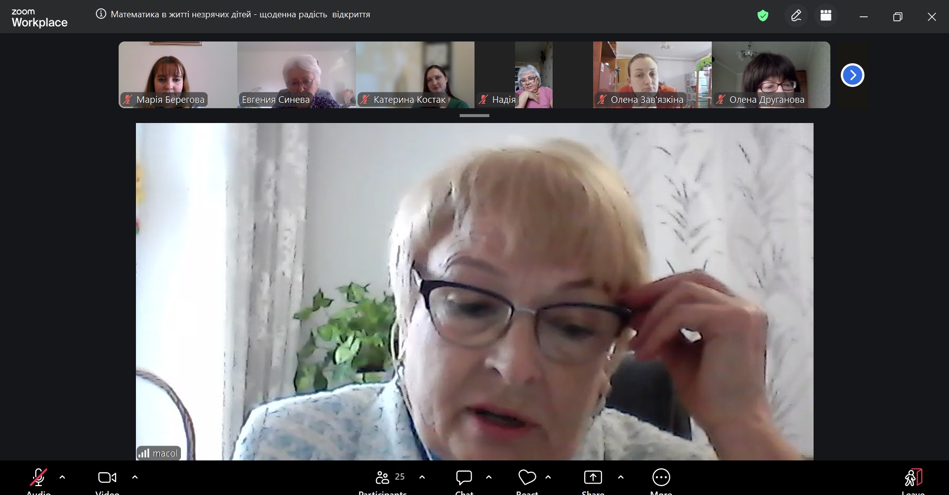 Спікеркою заходу виступила Ольга Дмитрівна Мацкевич, яка поділилася власним досвідом та науковими напрацюваннями щодо особливостей навчання математики дітей з порушеннями зору.