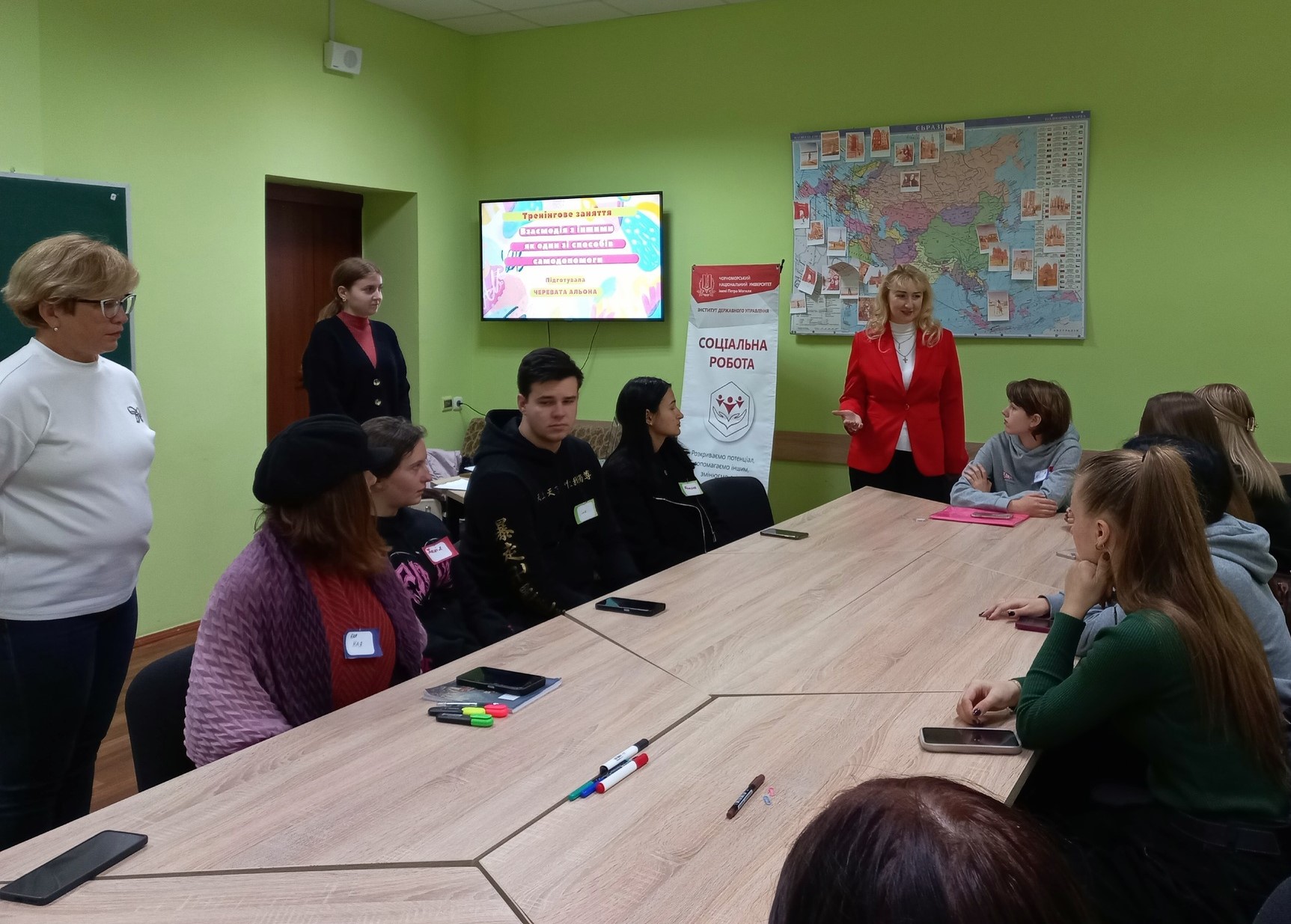 - 20.10, 13.10, 07.10.25 р. – тренінг-практикум для студентів на тему «Взаємодія з іншими як один зі способів самодопомоги». Ведуча: Альона Черевата, студентка 6 курсу спеціальності «Соціальна робота», провела в межах виробничої практики.