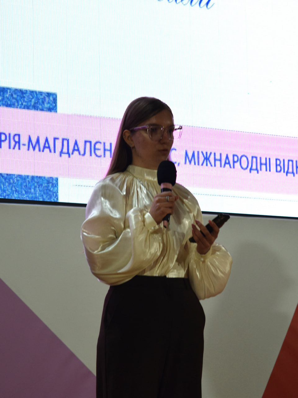 – Марія-Магдалена Буштець, студентка 3 курсу спеціальності «Міжнародні відносини, суспільні комунікації та регіональні студії». Вона зосередилася на питаннях комунікації та залучення студентів до діяльності колегії. Серед пріоритетів – регулярні зустрічі з адміністрацією, розвиток інформаційних каналів, підтримка студентських ініціатив та реформування внутрішньої роботи колегії. Вона також наголосила на необхідності врахування потреб студентів, які навчаються дистанційно, та посиленні їхньої участі в університетському житті;