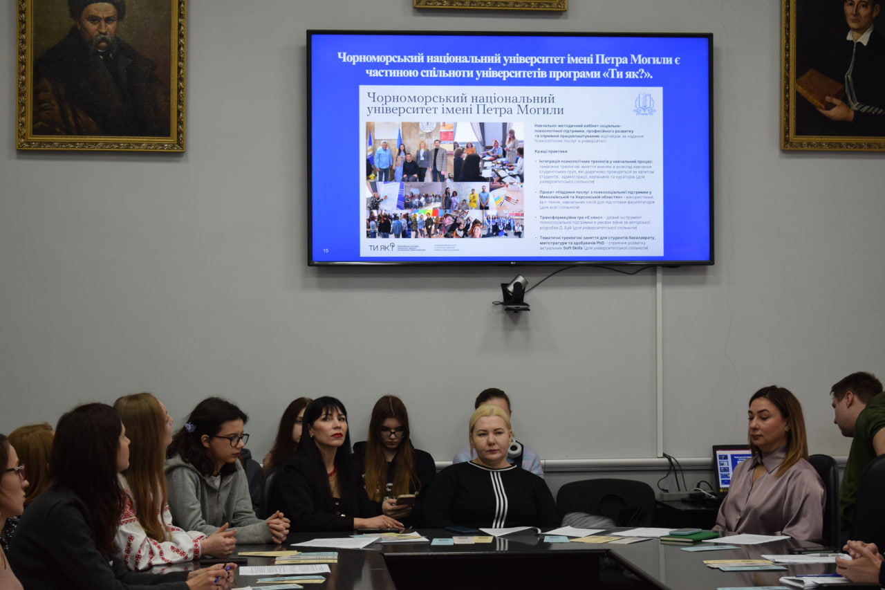 26 лютого в залі вченої ради Чорноморського національного університету імені Петра Могли відбувся День спільнодії «Сервіси «Ти як?» – університети та надавачі послуг: від теорії до практики». Як учасник спільноти «Ти як?», наш заклад об’єднав представників влади та освіти для розбудови системи психосоціальної підтримки в регіоні.