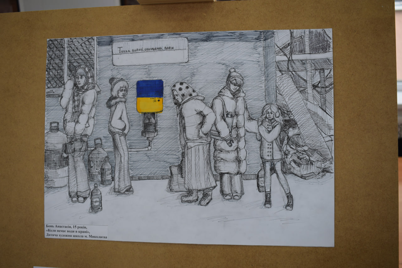 Експозиція стала художнім свідченням того, як місто долало кризу водопостачання в умовах війни та як цей досвід знайшов відображення в дитячій творчості.