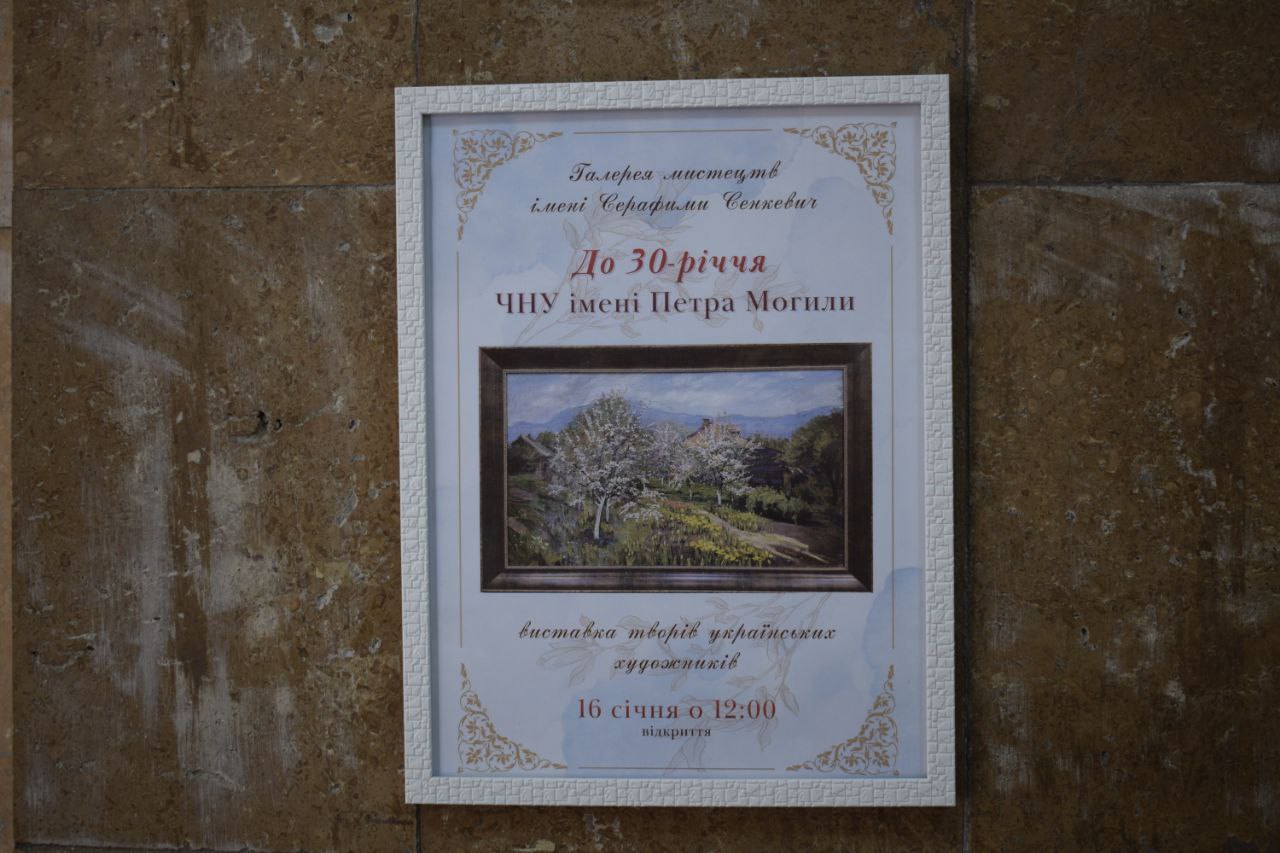16 січня в галереї мистецтв імені Серафими Сенкевич Чорноморського національного університету імені Петра Могили відкрилася тематична виставка, присвячена 30-річчю університету. Експозиція об’єднала роботи художників, творчих об’єднань і колекціонерів, які протягом трьох десятиліть співпрацювали з університетською галереєю.