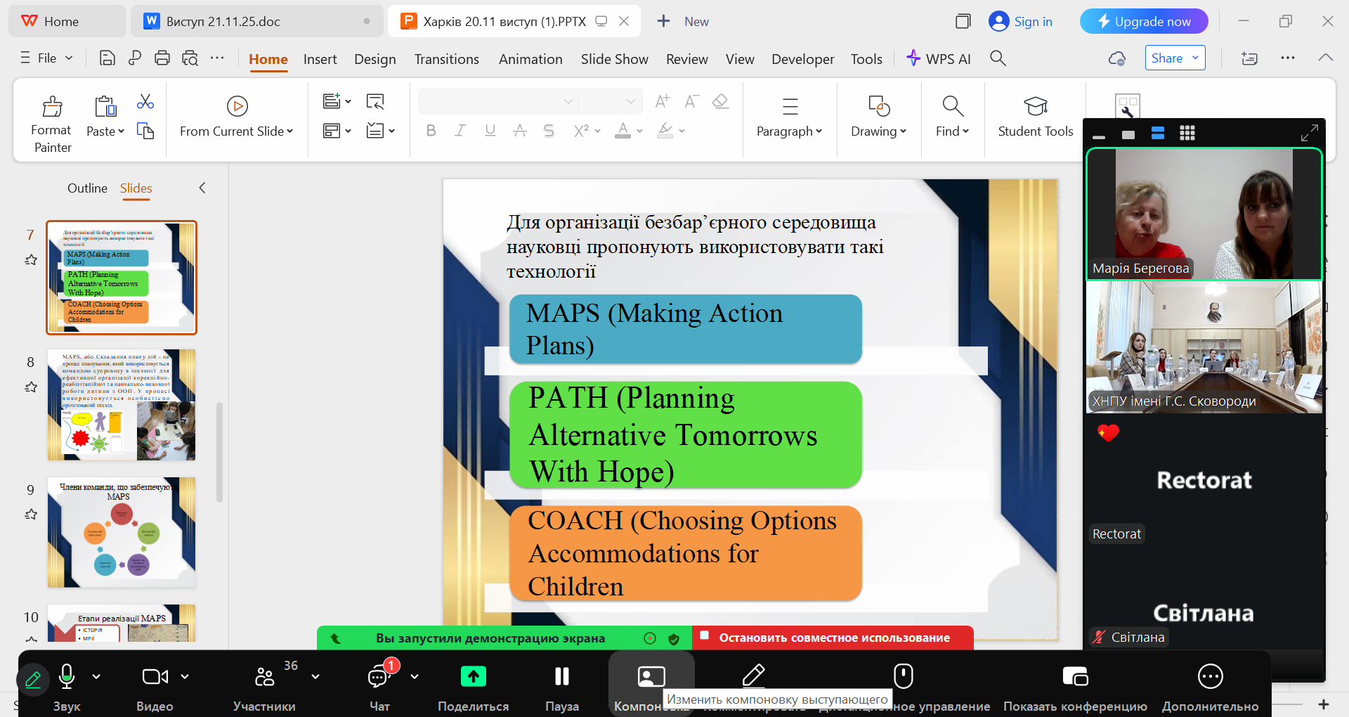 Доктор педагогічних наук, професор, завідувачка кафедри соціальної роботи, педагогіки і логопедії Чорноморського національного університету імені Петра Могили Савінова Н.В. та кандидат педагогічних наук, доцент тієї ж кафедри Берегова М.І. представили результати дослідження на тему «Сучасні виклики безбар’єрної освітньої інклюзії».