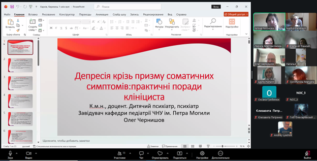 Жваві дискусії серед учасників викликали доповіді представника ЧНУ імені Петра Могили Олега Чернишова. Його виступи були присвячені вкрай важливим для практикуючих лікарів темам: розпізнаванню депресії, що «маскується» під соматичні симптоми, а також тонкощам і найпоширенішим питанням щодо призначення антидепресантів та антипсихотиків пацієнтам із супутніми соматичними патологіями.