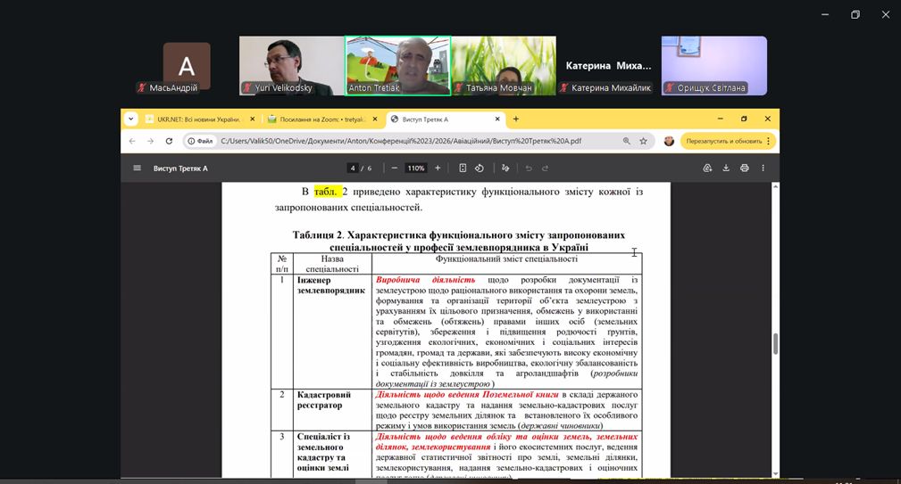 Під час конференції обговорювалися завдання науки й освіти у формуванні сучасних спеціальностей у сфері землеустрою. Викладачі спеціальності G18 «Геодезія та землеустрій» наголосили, що підготовка фахівців має бути спрямована на розуміння ролі кожної спеціалізації та її значення для подальшого розвитку галузі.