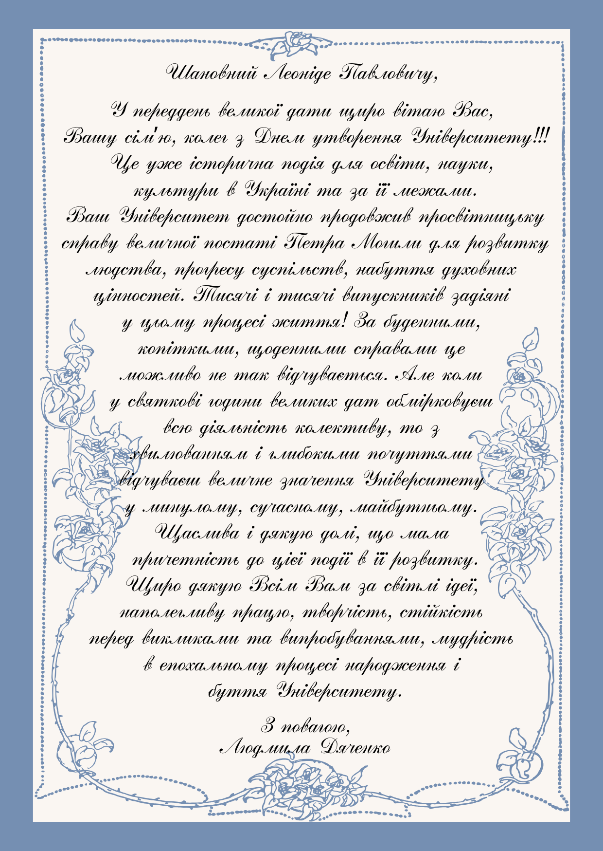 Ваші теплі слова та увага є свідченням підтримки, співпраці й спільних прагнень до розвитку освіти та науки. Ми цінуємо партнерські відносини та спільні зусилля, які сприяють зміцненню позицій університету та його внеску у формування сучасного освітнього простору України.