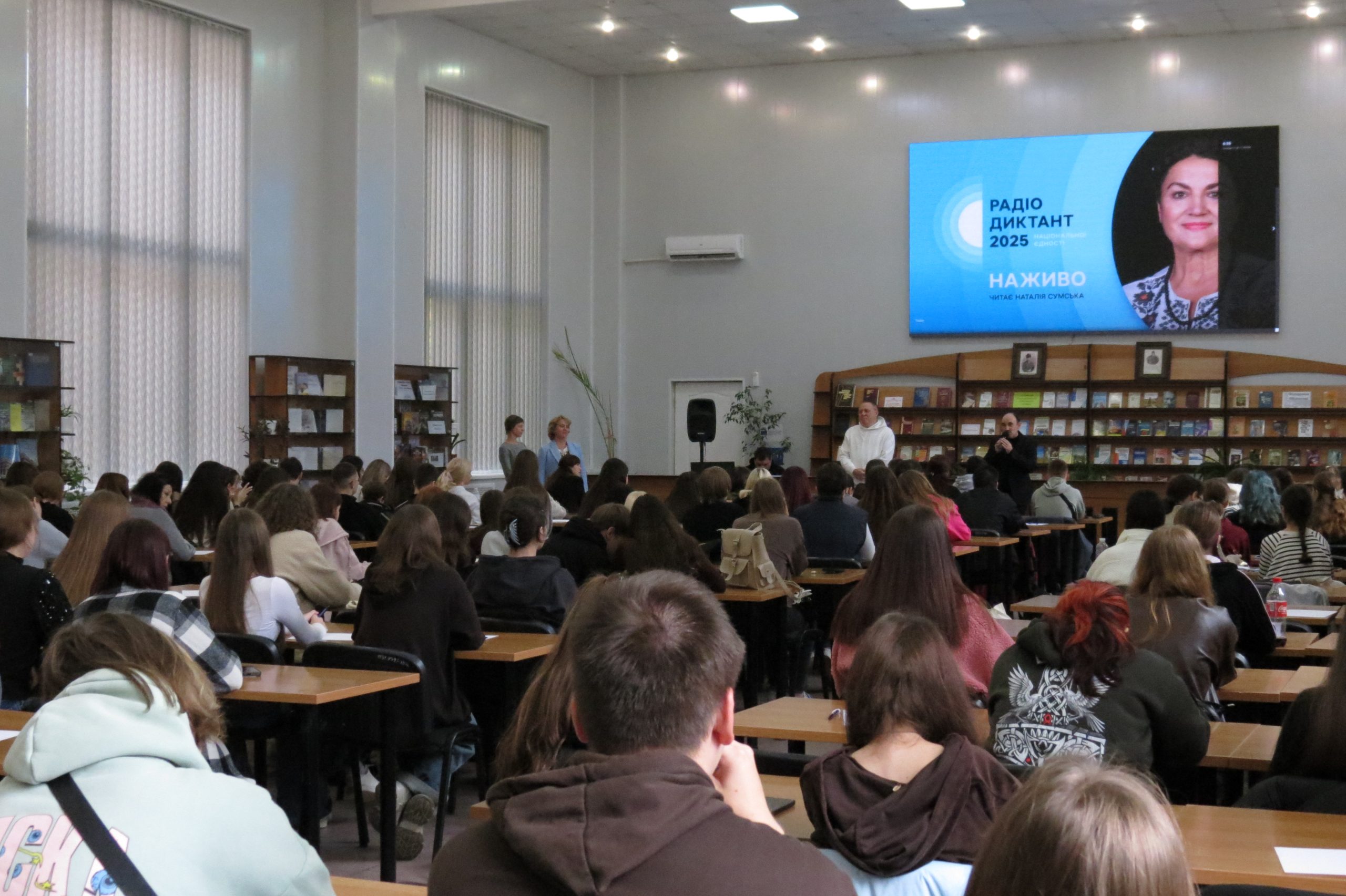 27 жовтня 2025 року в читальній залі Чорноморського національного університету імені Петра Могили відбувся Всеукраїнський радіодиктант національної єдності – щорічна акція, що має на меті об’єднати українців навколо рідної мови та продемонструвати її важливість у суспільному житті.