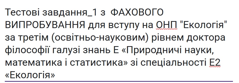 18 вересня 2025 року відбувся фаховий іспит для вступників на третій рівень вищої освіти (PhD) за спеціальністю Е2 Екологія.