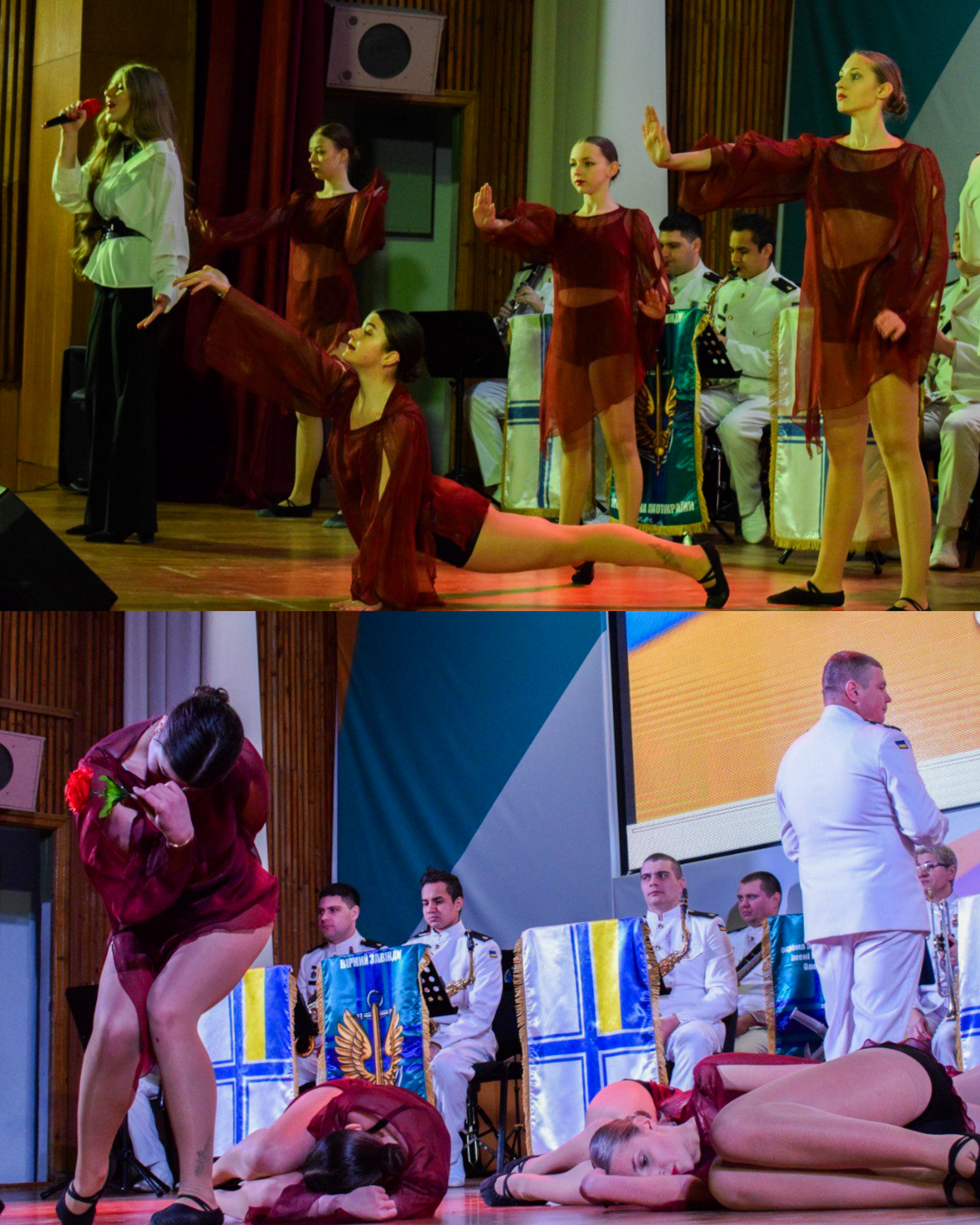 На сцені виступили здобувачі освіти та випускники Миколаївського фахового коледжу культури і мистецтв спеціальності «Хореографія», солістки Народного художнього колективу сольного співу «Престиж» – Анастасія Братащук, Софія Солощук і Анна Айвозян, а також лауреатка міжнародних та всеукраїнських пісенних конкурсів Антоніна Хайдукова.
